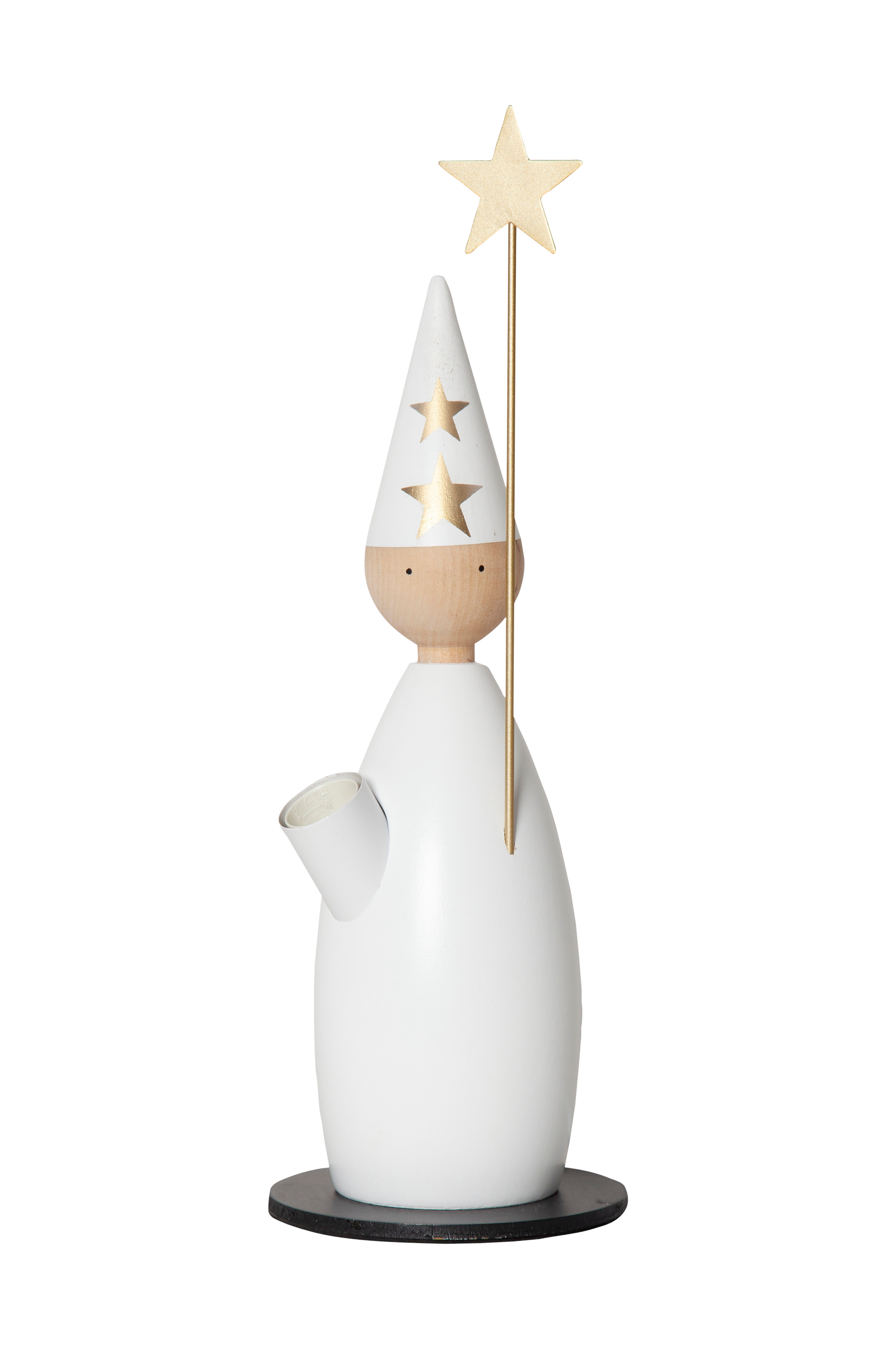 Fantastisk fin drejet stjernebærer som adventslysestage fremstillet i træ. E14-fatning, tilkøb pære. Stil den i et vindue eller på en skænk. Smuk adventsstage til at pynte med til jul.