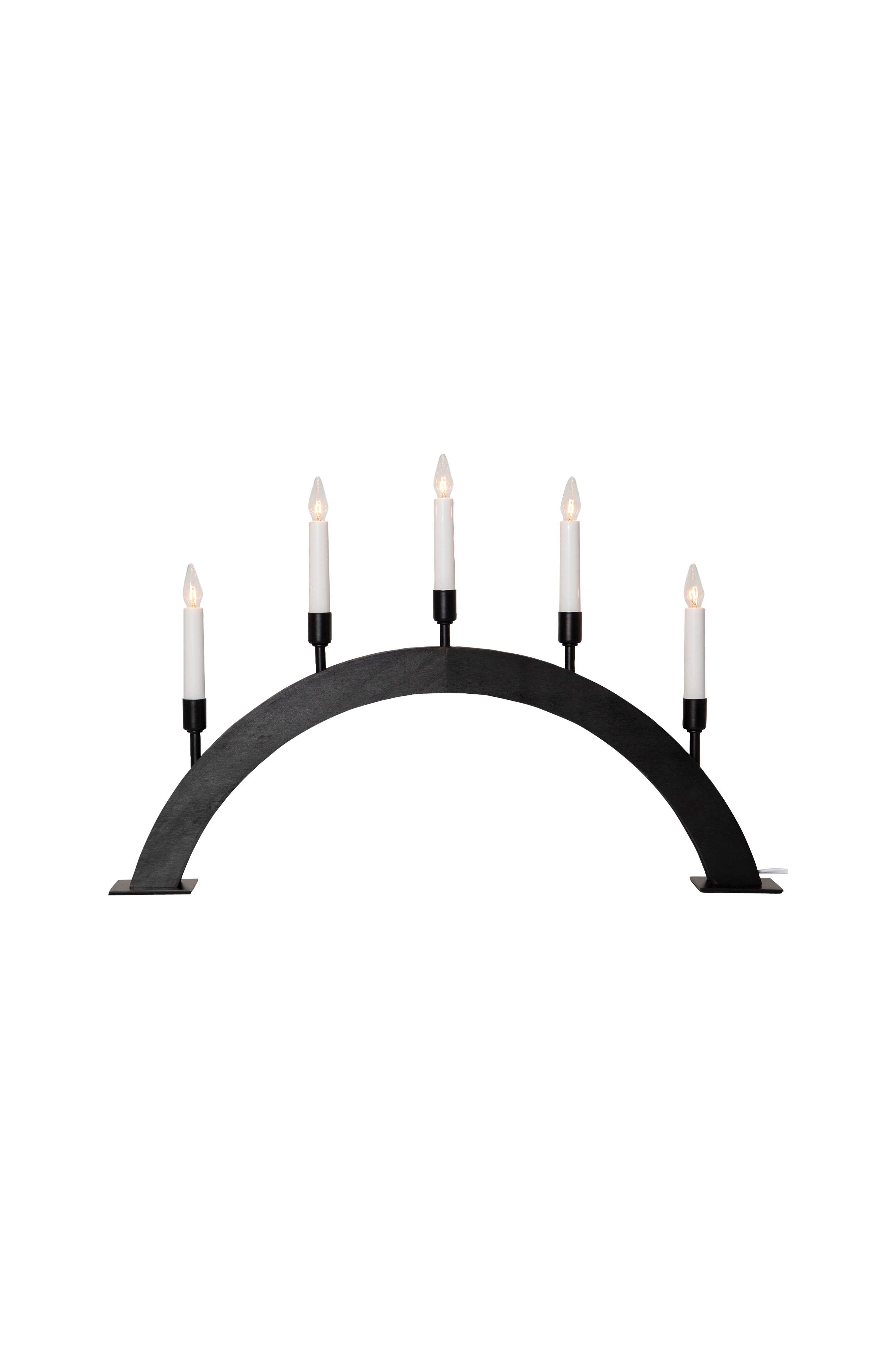En fin og stemningsfuld lysestage til julen. Sortbejdset træbund i form af en bue med lysholdere giver et elegant og enkelt udtryk til både boligen og det offentlige miljø. Spreder et behageligt lys med sine 7 lyskilder. Placer i et vindue eller på en skænk for at få en dejlig julestemning.