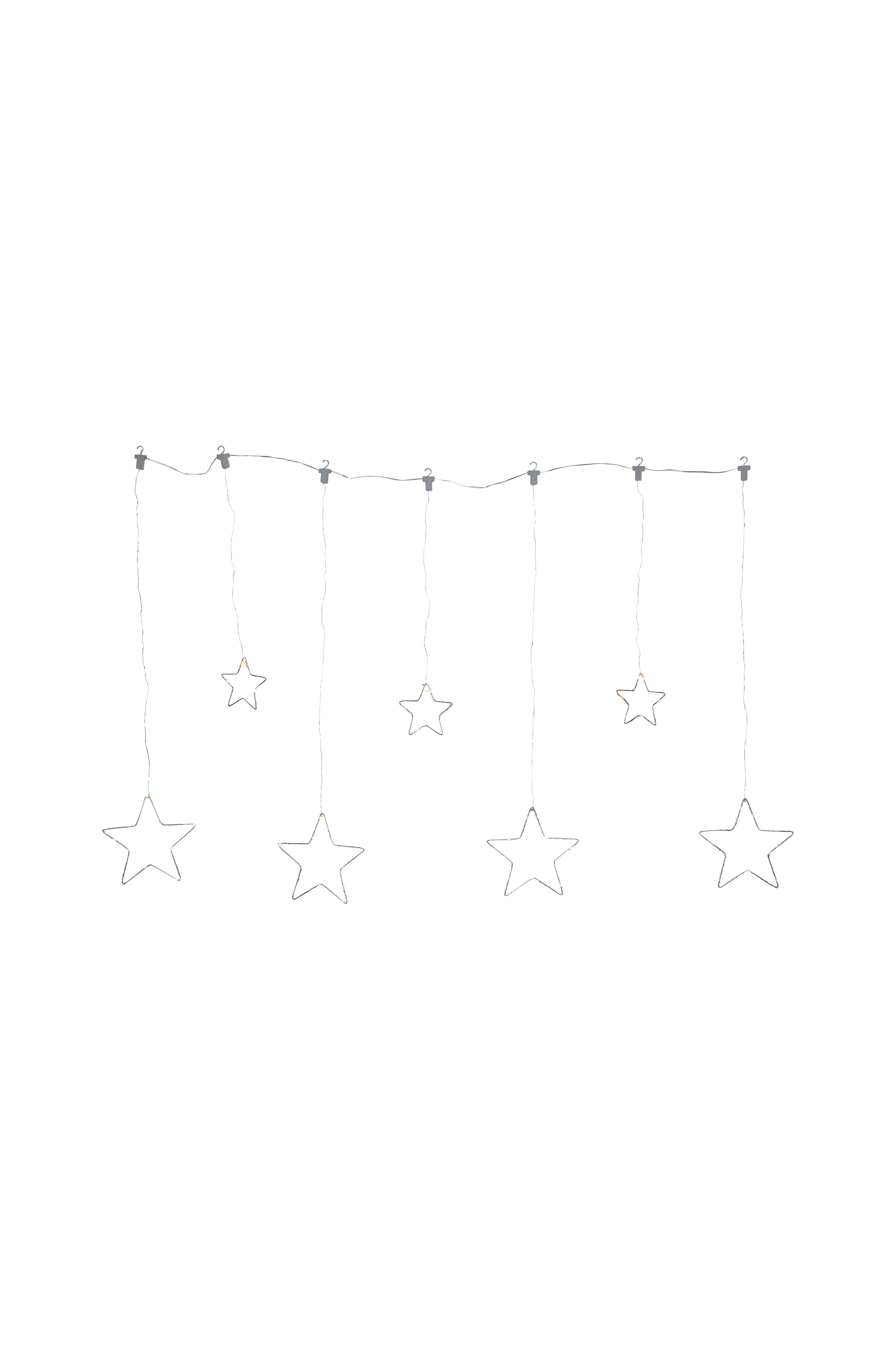 Gardinkæde med stjernepynt til indendørs brug. Skaber en hyggelig stemning i dit hjem, med IP20-transformer.