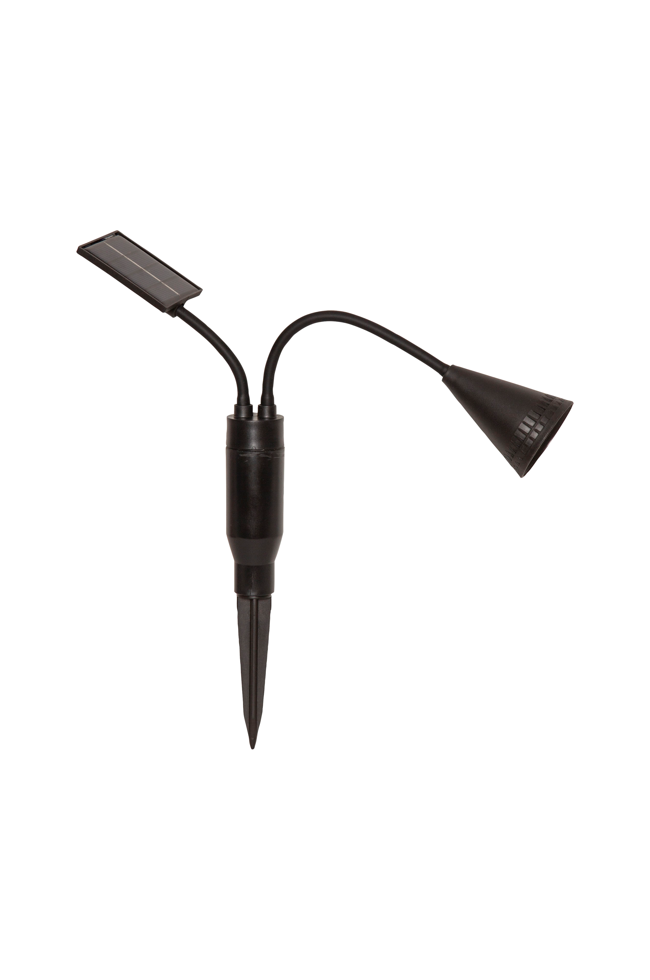 Solcellebelysning med 1 spotlight, der er monteret på en bøjelig arm, som gør det nemt at rette lyset derhen, hvor du vil have det til at skinne. Spottet oplyser din have eller terrasse med 20 lumen i mørke og er et godt valg til at rette lyset mod en busk eller et træ. Selve paneldelen sidder på sin egen bøjelige arm, hvilket betyder, at denne del også kan vendes mod solen på en enkel måde, hvilket er nødvendigt for at oplade de medfølgende batterier.
