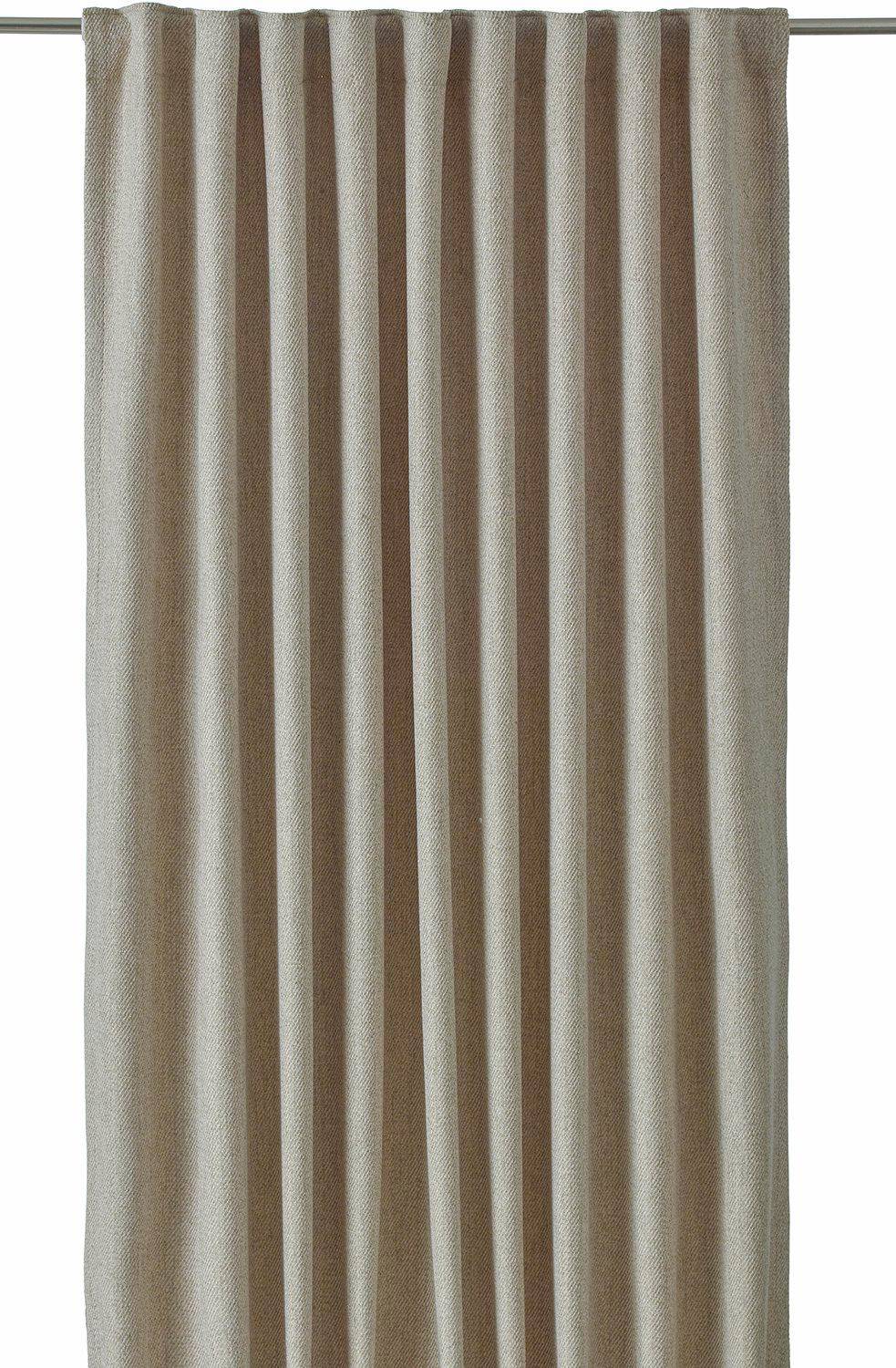 2-pak gardinlængder med en lidt grovere uldlignende struktur og en diagonal vævningseffekt. Gardinlængden har multibånd foroven, opsømmede langsider og overlocksøm i bunden. Brug fikseringsbånd til at justere længden på gardinet. Mål på hvert gardin er 140x280 cm. Kan krybe maks. 1%. Multibåndet er en fleksibel løsning som gør at gardinet kan hænges op med fingerhægter, kroge eller direkte på stangen, afhængigt af hvilken type læg og hvilket fald du ønsker på gardinet. 100% polyester.