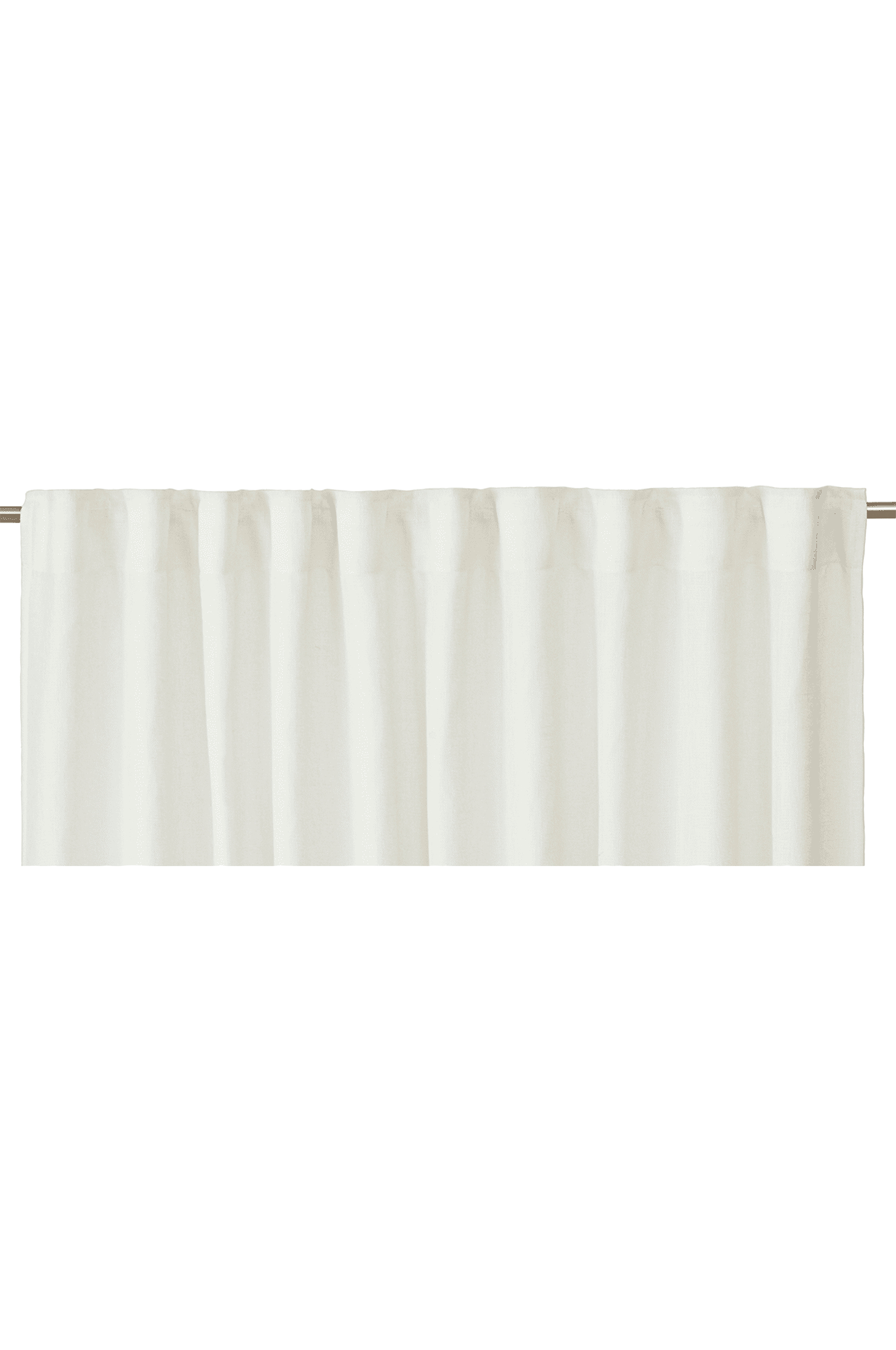 Ensfarvet gardinkappe i en mat kvalitet med forvasket look. Stoffet har en mellemtæt kvalitet med struktur. Har multibånd foroven, sømmede langsider og kant forneden. Multibåndet er en fleksibel løsning som gør at gardinet kan hænges op med fingerhægter, kroge eller direkte på stangen, afhængigt af hvilken type læg og hvilket fald man ønsker på gardinet. Mål 47x250 cm. 100% Polyester.
