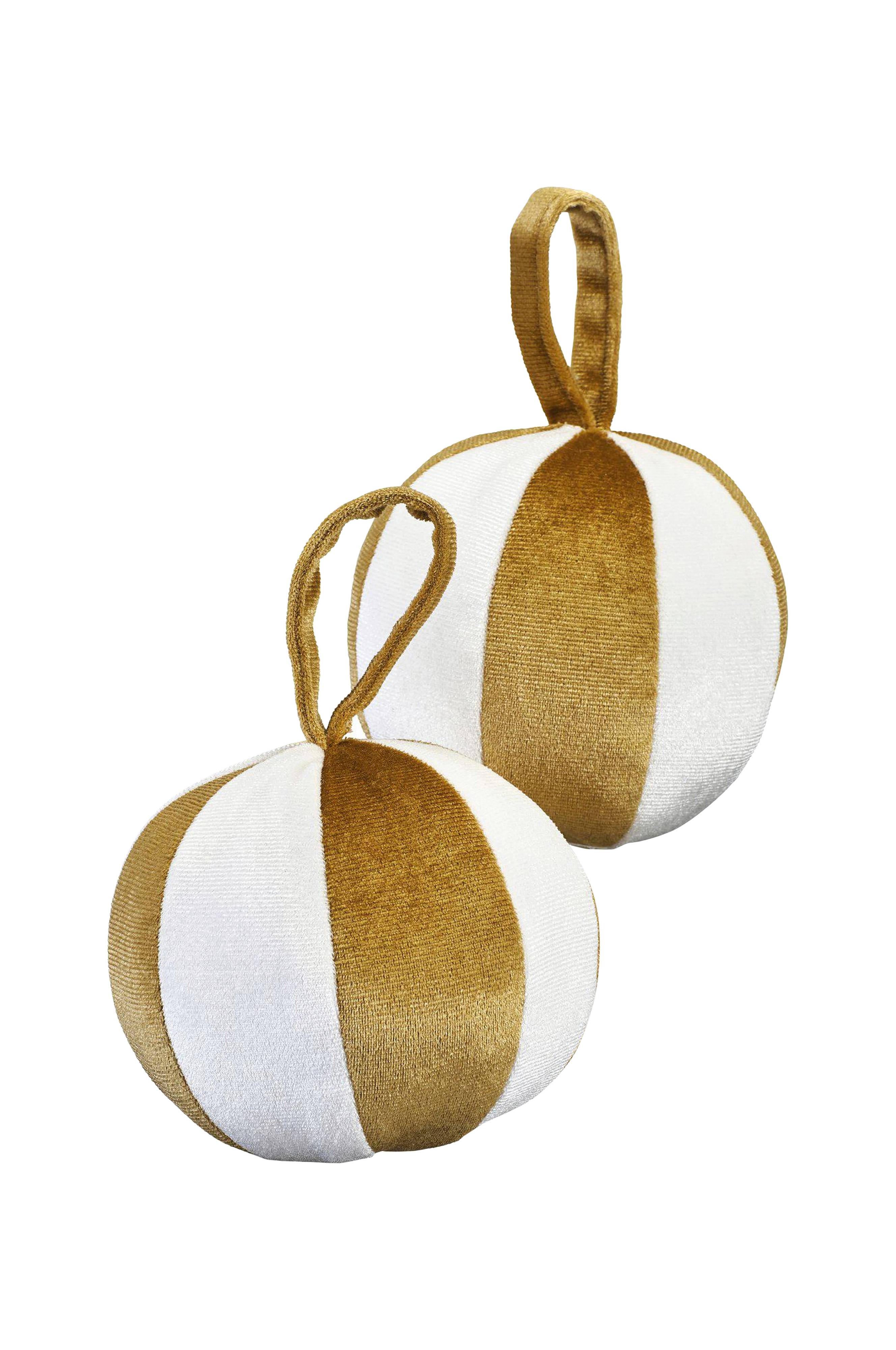 2-pak dekorative kugler i tofarvet fløjl. Sæt den i juletræet, i vinduet eller på dit julebord som dekoration. Hver kugle er 22 cm i diameter med et øje i toppen.