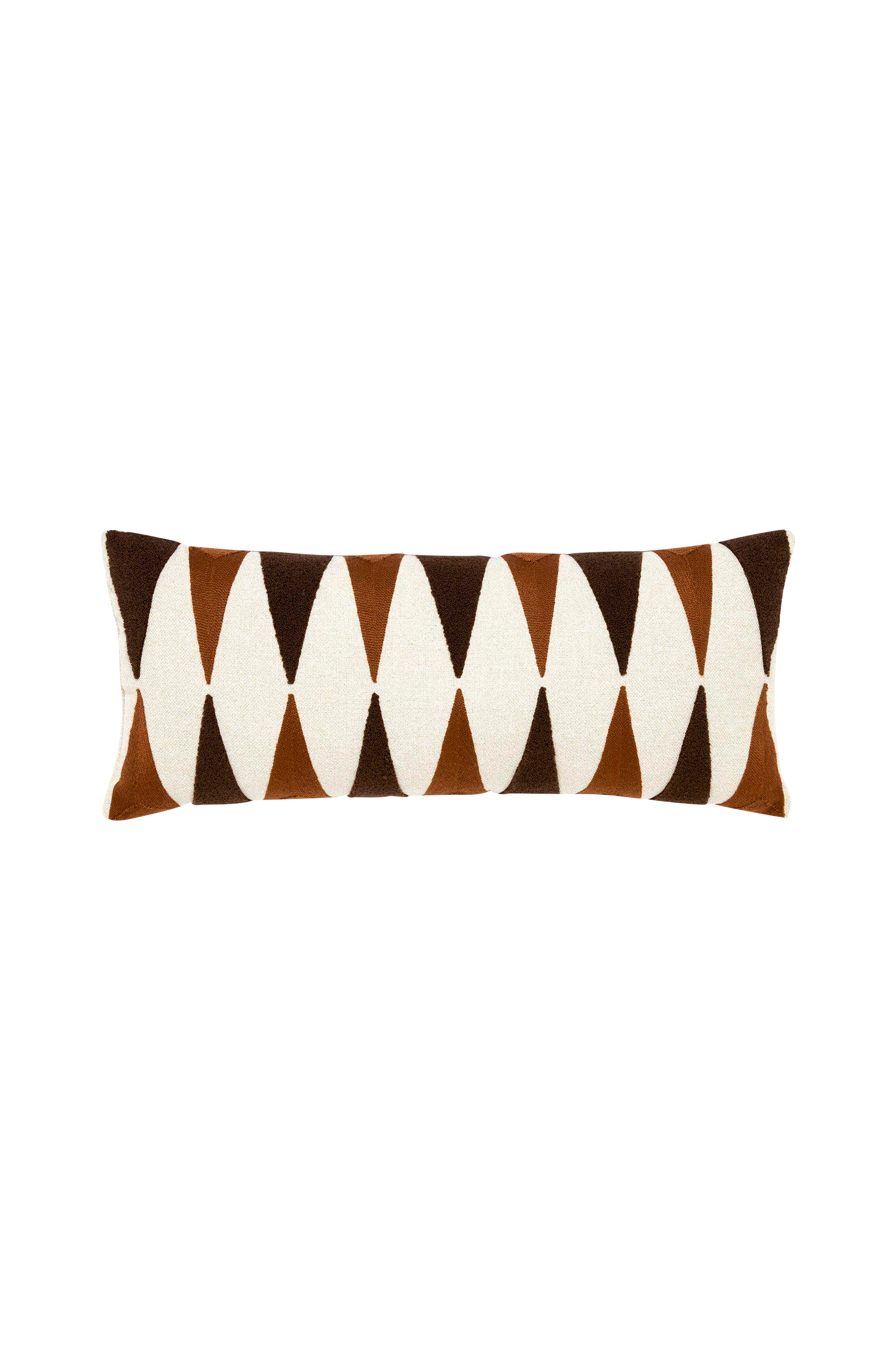 Broderet pude. Mål 30x70 cm. Produktet er certificeret ifølge standard 100 by oeko-tex®. Certificeringen garanterer, at produktet er testet og frit for sundheds- og miljøskadelige stoffer. Tåler ikke vask i vand, kan ikke kemisk renses. 100% polyester.