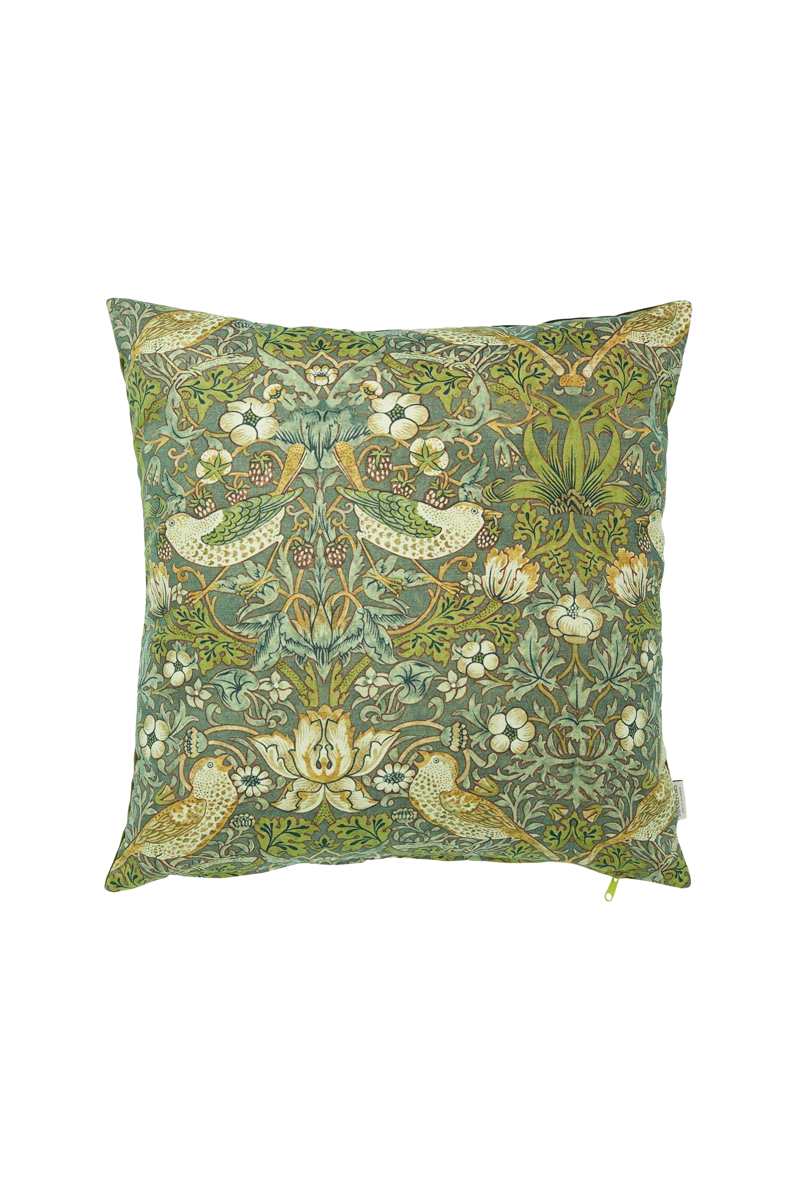 Pudebetræk med smukt mønster af blomster, blade og fugle. Monteringspude købes separat. For at få et fyldigt udtryk stoppes betrækket med fordel med en pude i målene 50x50 cm. Pudebetrækket har en lynlås i kanten forneden. Mål 45x45 cm. 100% polyester.