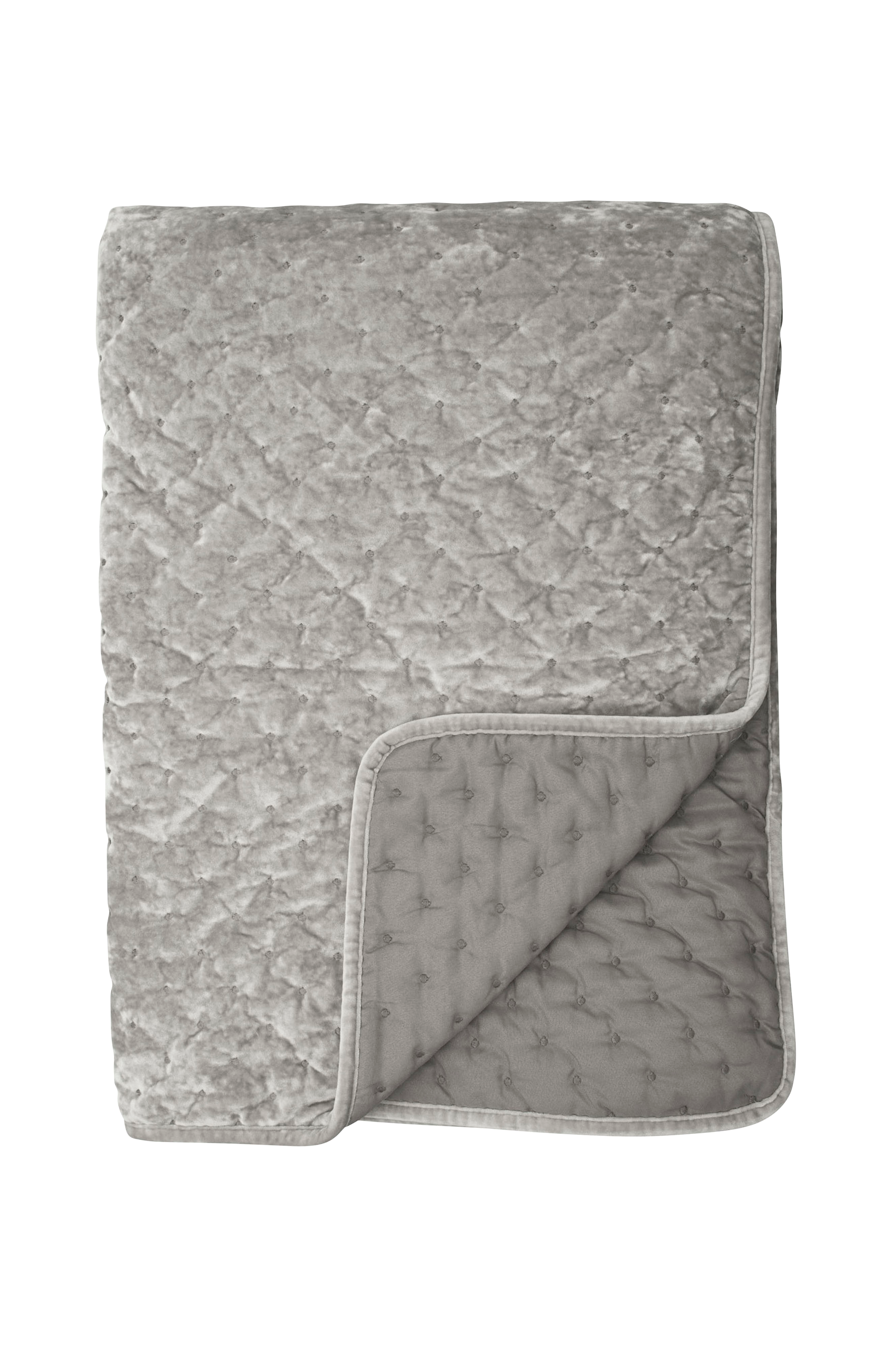 Quiltet sengetæppe Samantha med broderede prikker. Smukt sengetæppe i blød velour med skøn glans.