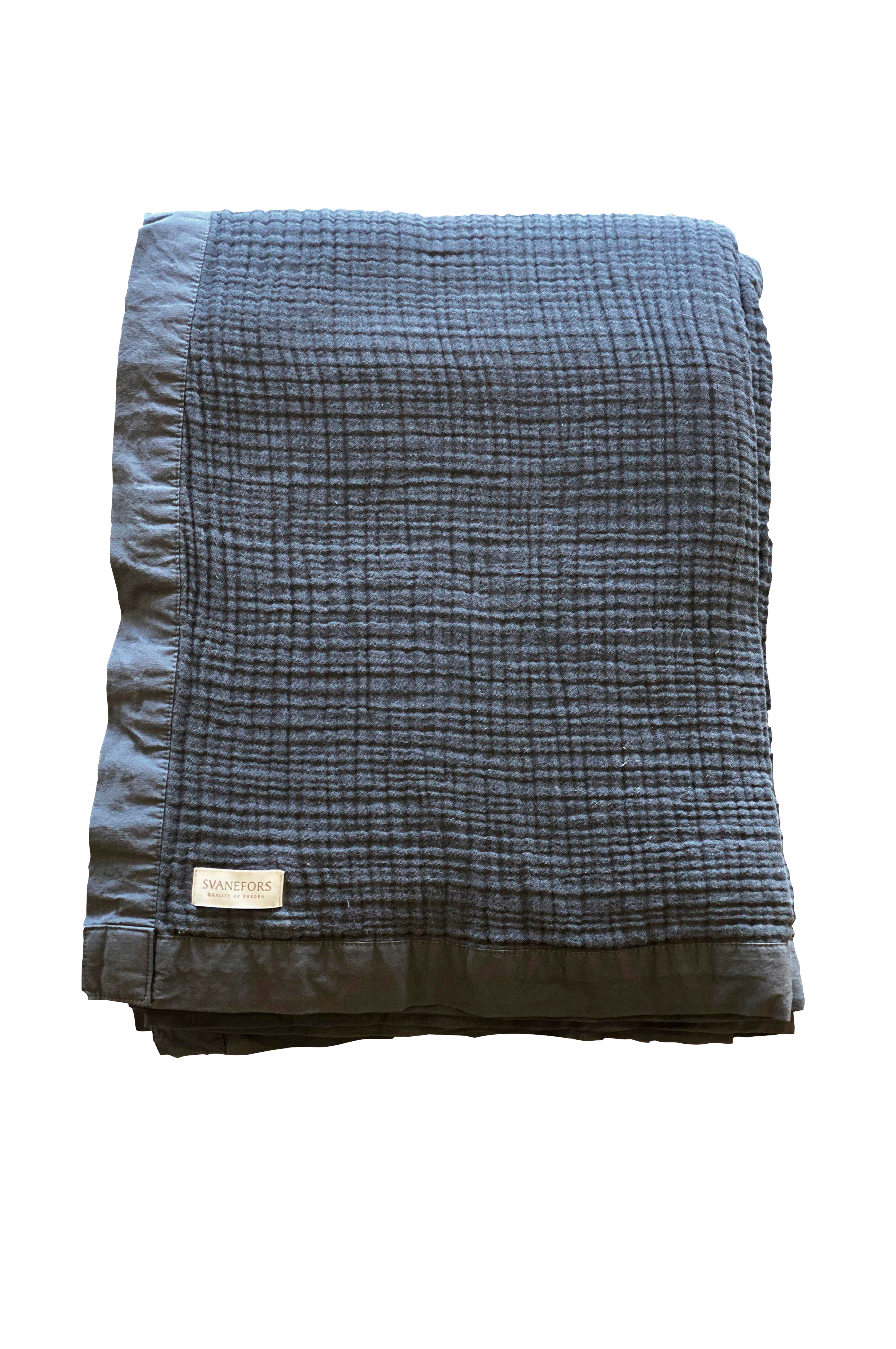 Sengetæppe My i blødt vasket bomuld, forside med let krøllet udseende og farvematchet kantbånd. Mål 240x260 cm, passer til dobbeltseng eller hvis man vil lægge sengetæppet forneden på sengen. 100% bomuld.