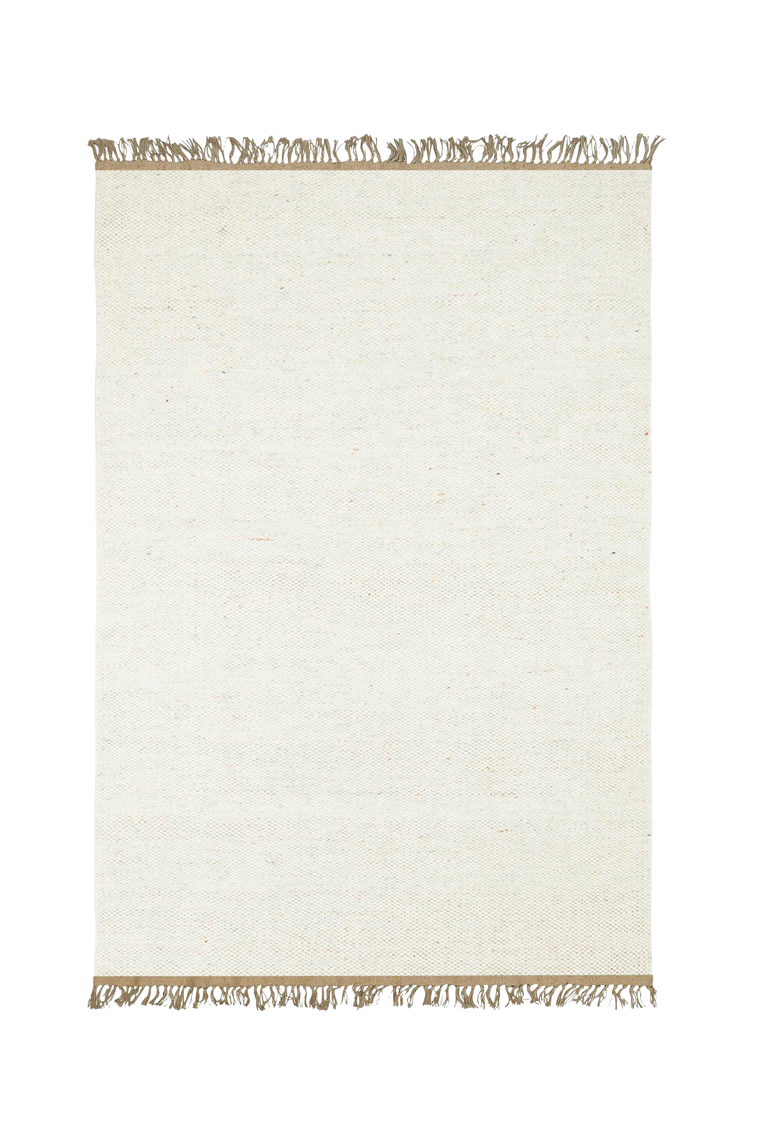 Ian er et tyndt, glatvævet uldtæppe med jutetrend. Rens eventuelle pletter med en fugtet klud eller indlever til professionel tæpperens. Mål 170x240 cm. Uld har en naturlig smuds- og vandafvisende evne og egner sig derfor rigtig godt som materiale i et tæppe. Der kan forekomme folder på gulvtæppet efter fragt, men disse forsvinder efter noget tid. Gulvtæppet er håndlavet, hvilket gør at små ujævnheder i vævningen kan forekomme. 75% uld, 25% jute.