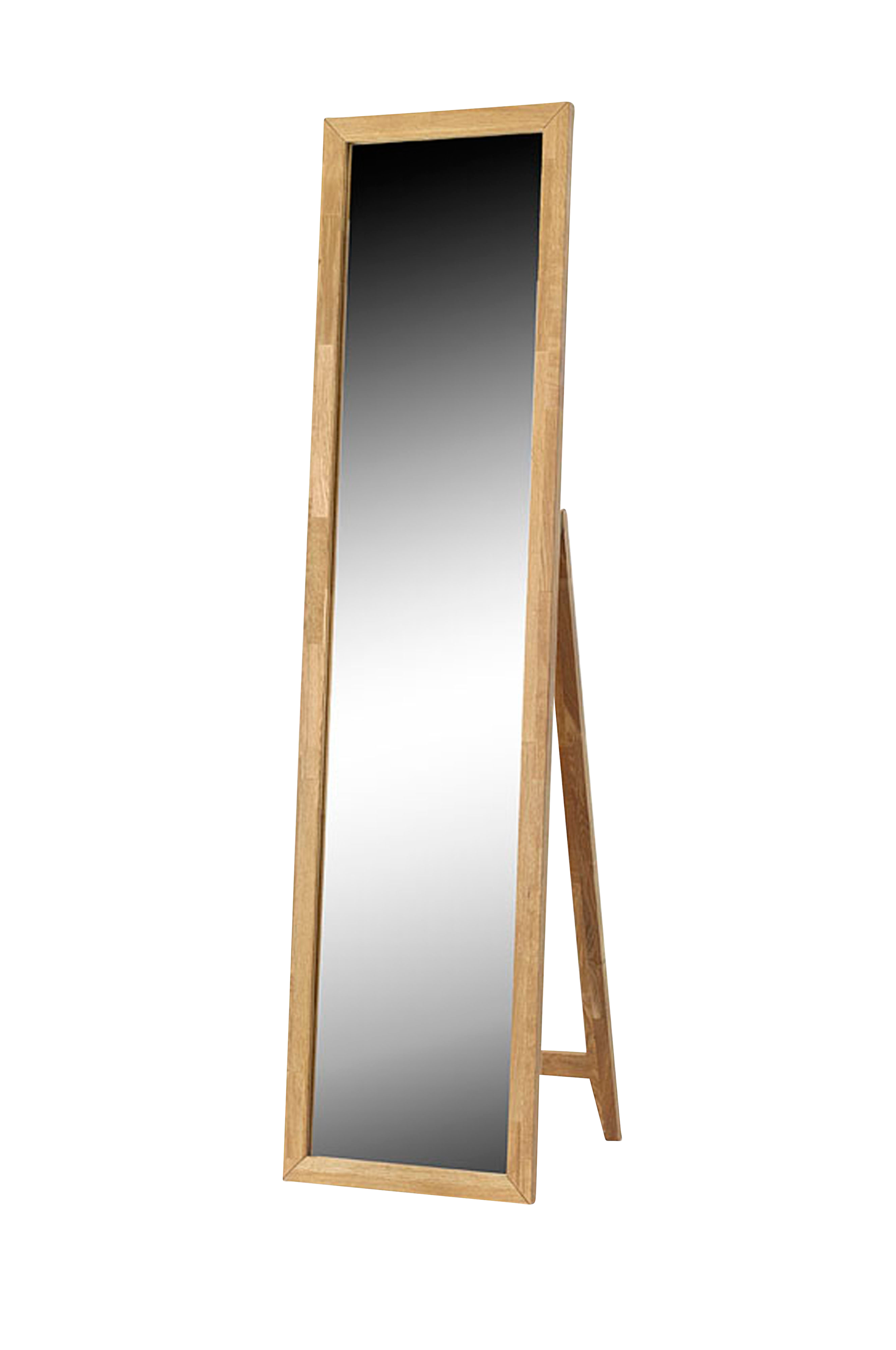Gulvspejl stående massiv olieret eg. Bredde 40 cm. Højde 160 cm. Vægt 15 kg.