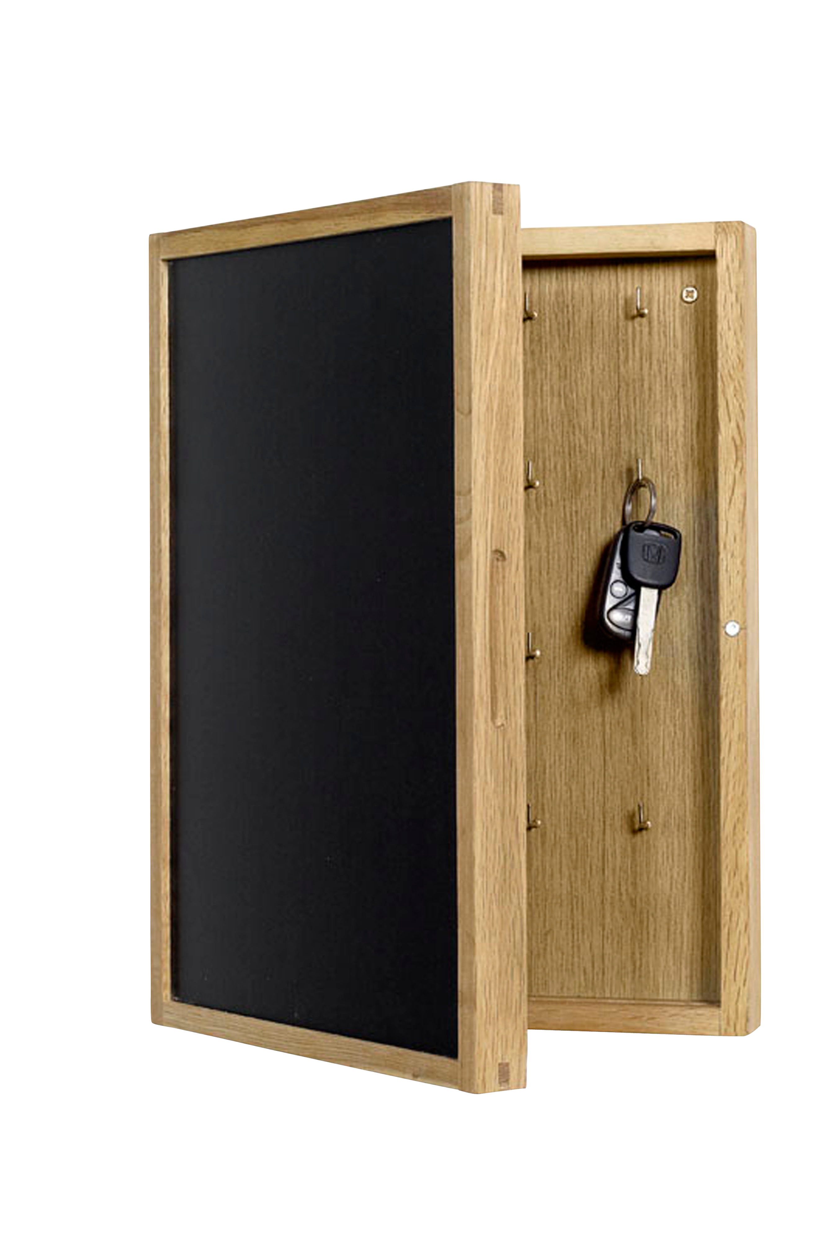 Nøgleskab med tavle i olieret eg. Bredde 30 cm. Dybde 6 cm. Højde 42 cm. Vægt 1 kg.