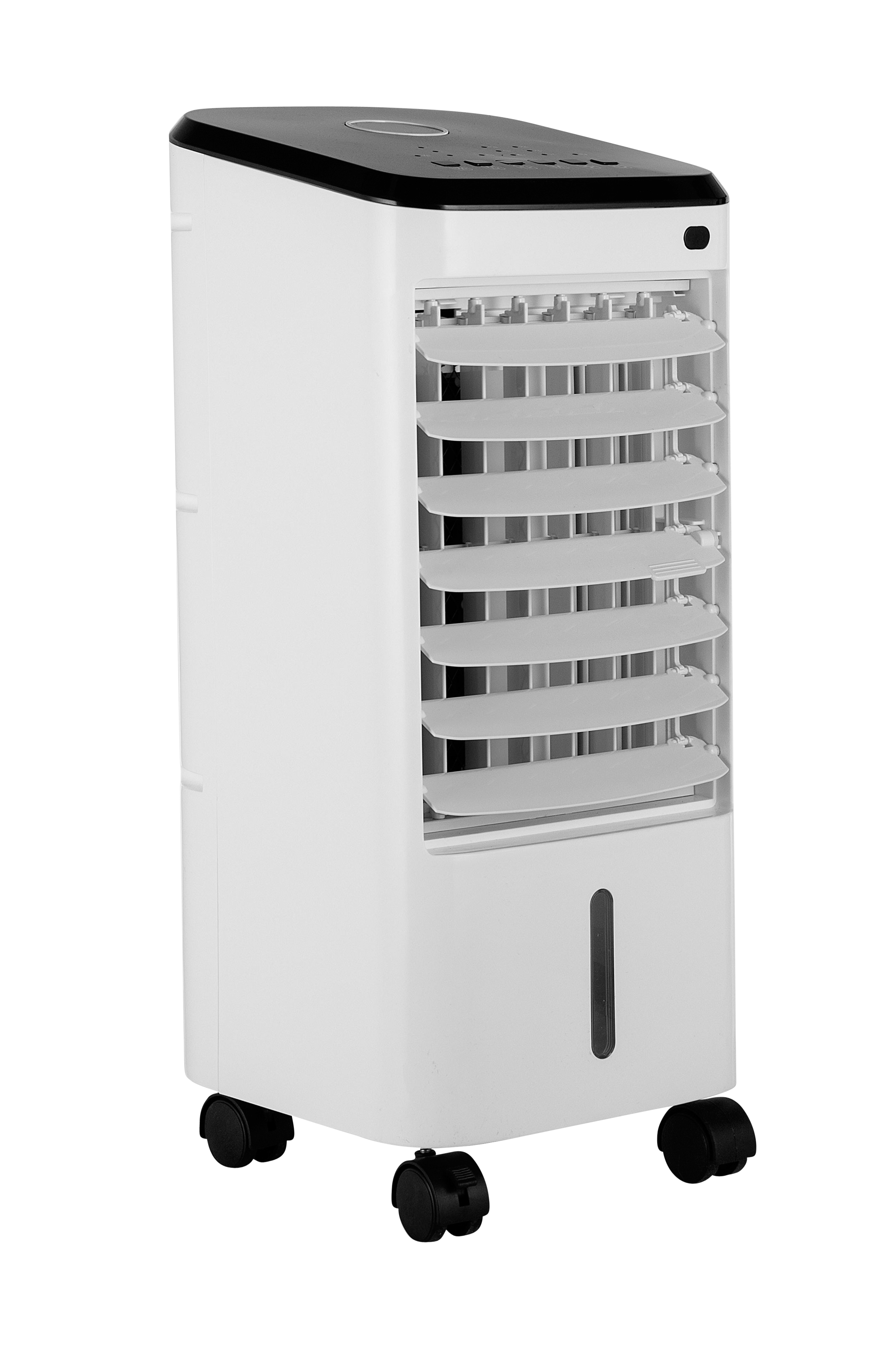Kan let placeres der, hvor den gør mest nytte takket være hjulene. Den er også udstyret med mange indstillingsmuligheder, så den dækker alles behov. Luften fra ventilatoren passerer vandet i beholderen og giver en svalende effekt.