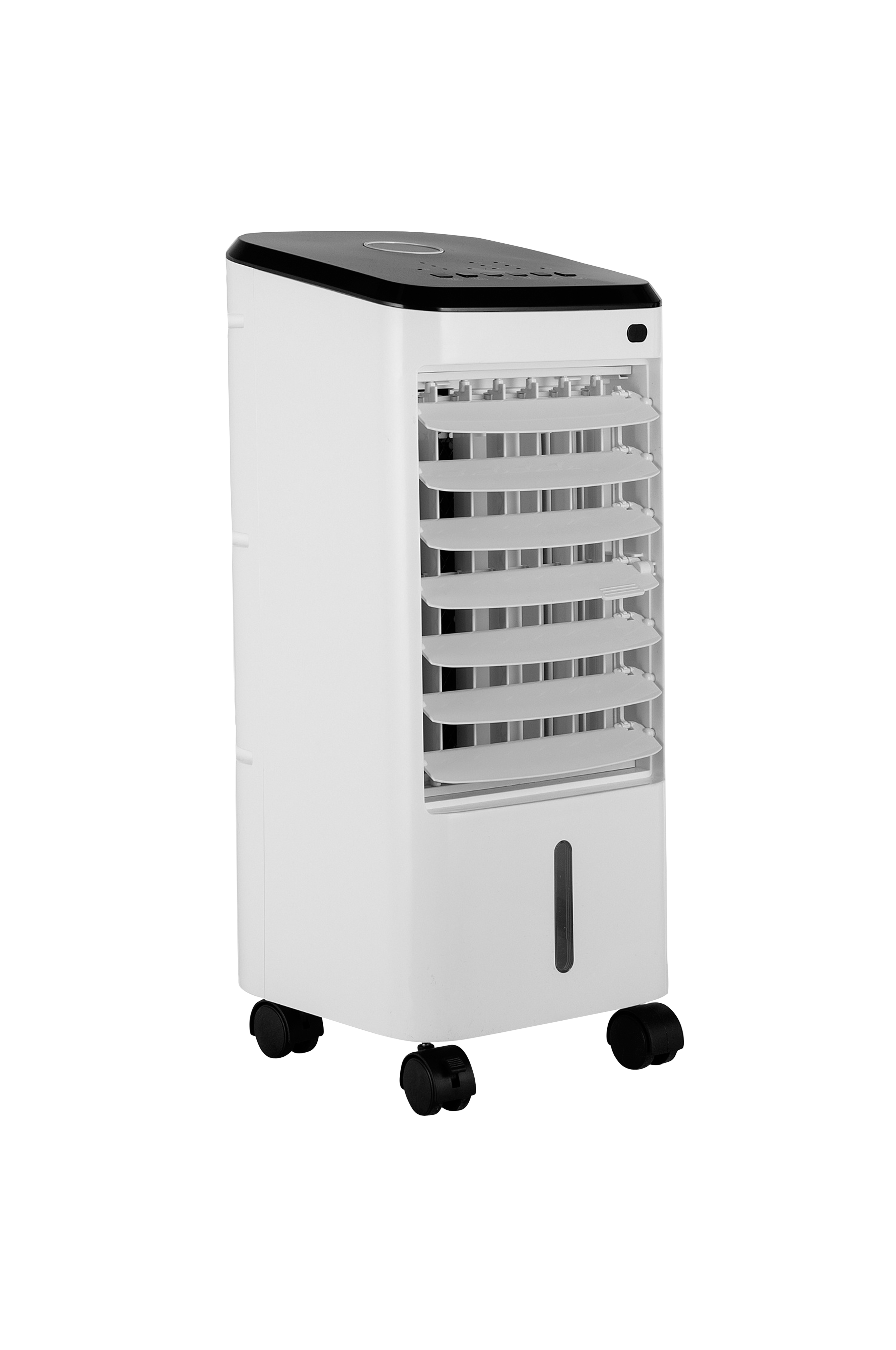 Den har 3 indstillinger: normal, natur og søvn, med justerbare hastigheder og en 4-liters vandtank til langvarig brug. Timerfunktionen kan indstilles til mellem 1 og 7 timer, og fjernbetjeningen er praktisk. Luftkøleren har drejelige hjul, så den er nem at placere, og luftstrømmen kan justeres i 45 grader.