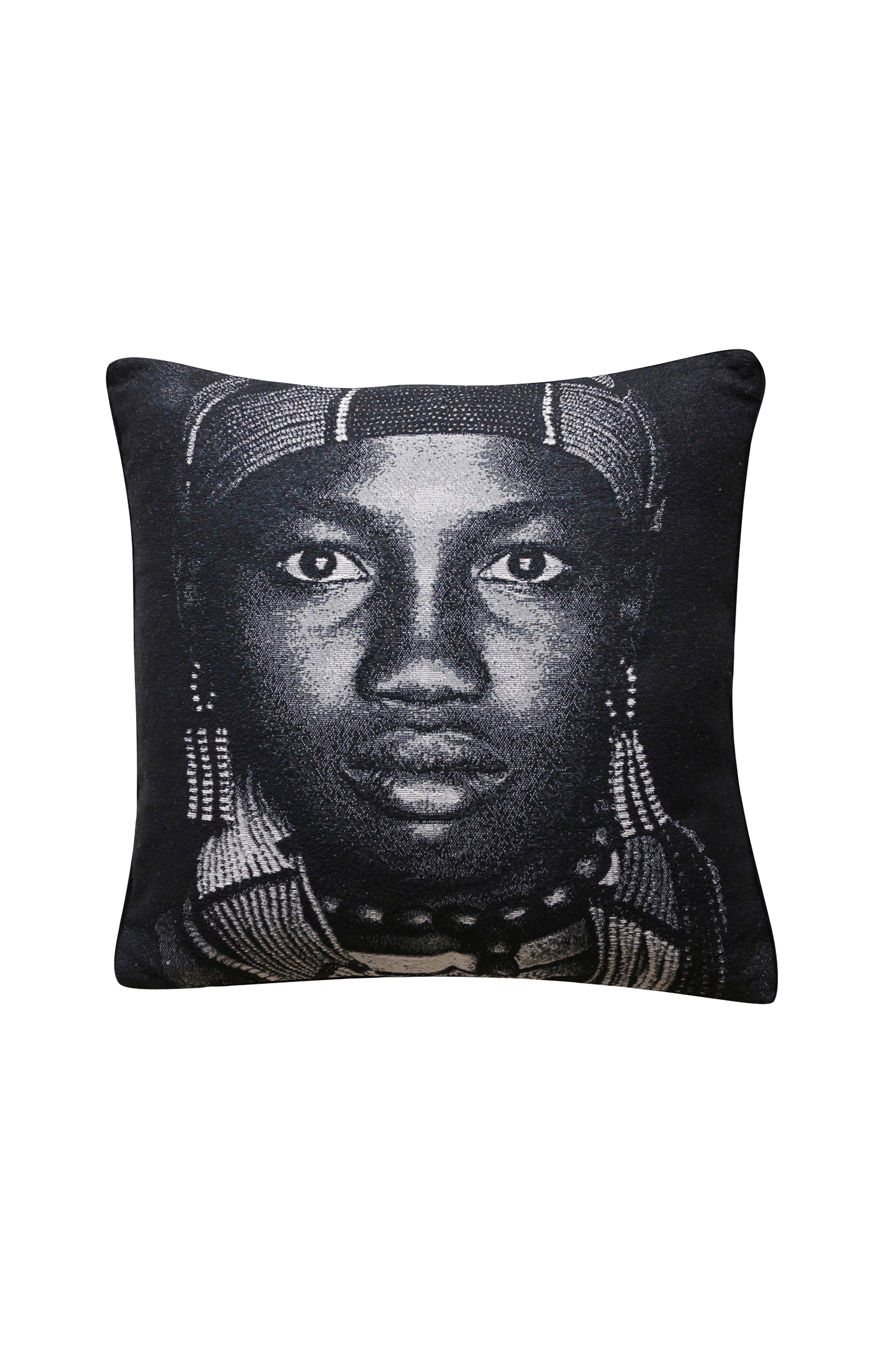 Her er noget for dem, der vil have en lidt anderledes pude, med et køligt kvindehoved, der er også nogle fine farvenuancer i den.