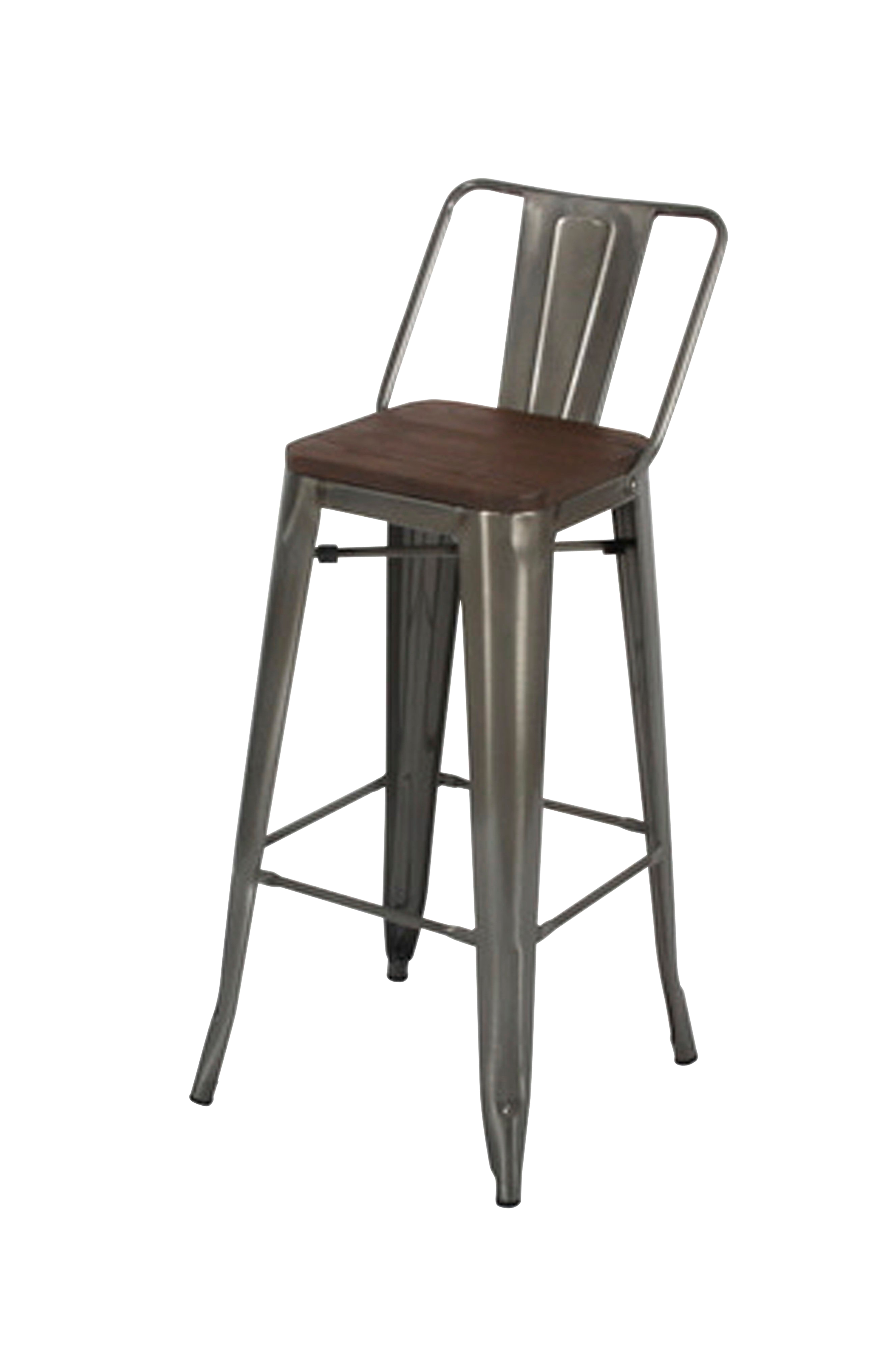 Denne franskinspirerede barstol i metalplade med træsæde passer ind de fleste steder, med det lille dekorative ryglæn som en ekstra finesse. Designet er moderne og nutidigt, hvilket gør den meget populær hos de fleste.