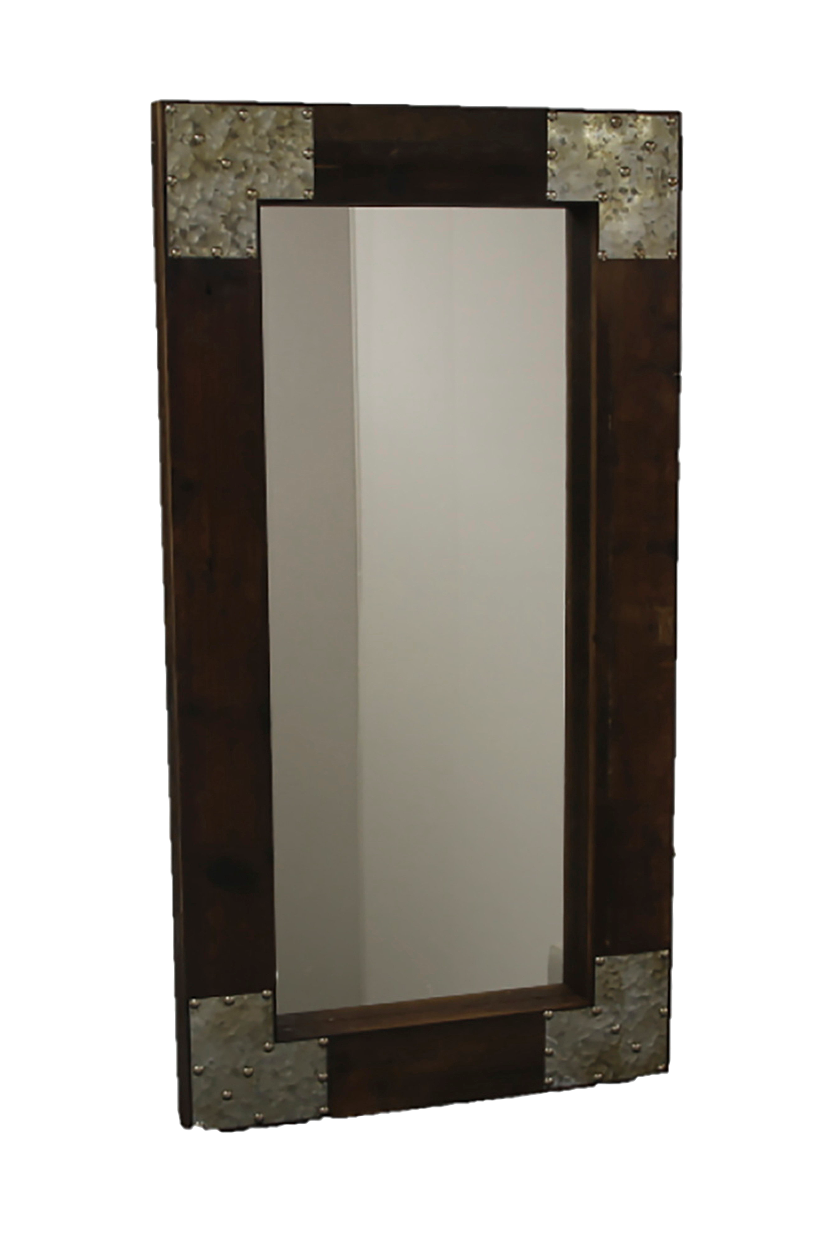 Davos vægspejl i træ fra nedlagte gamle huse, så hvert spejl har sin egen karakter, det kommer også med pladedekorationer i hvert hjørne, der er fastgjort med nitter, hvilket giver det et lidt antikt look, super stilfuldt på de fleste vægge. Spejlets vægt er 8 kg.