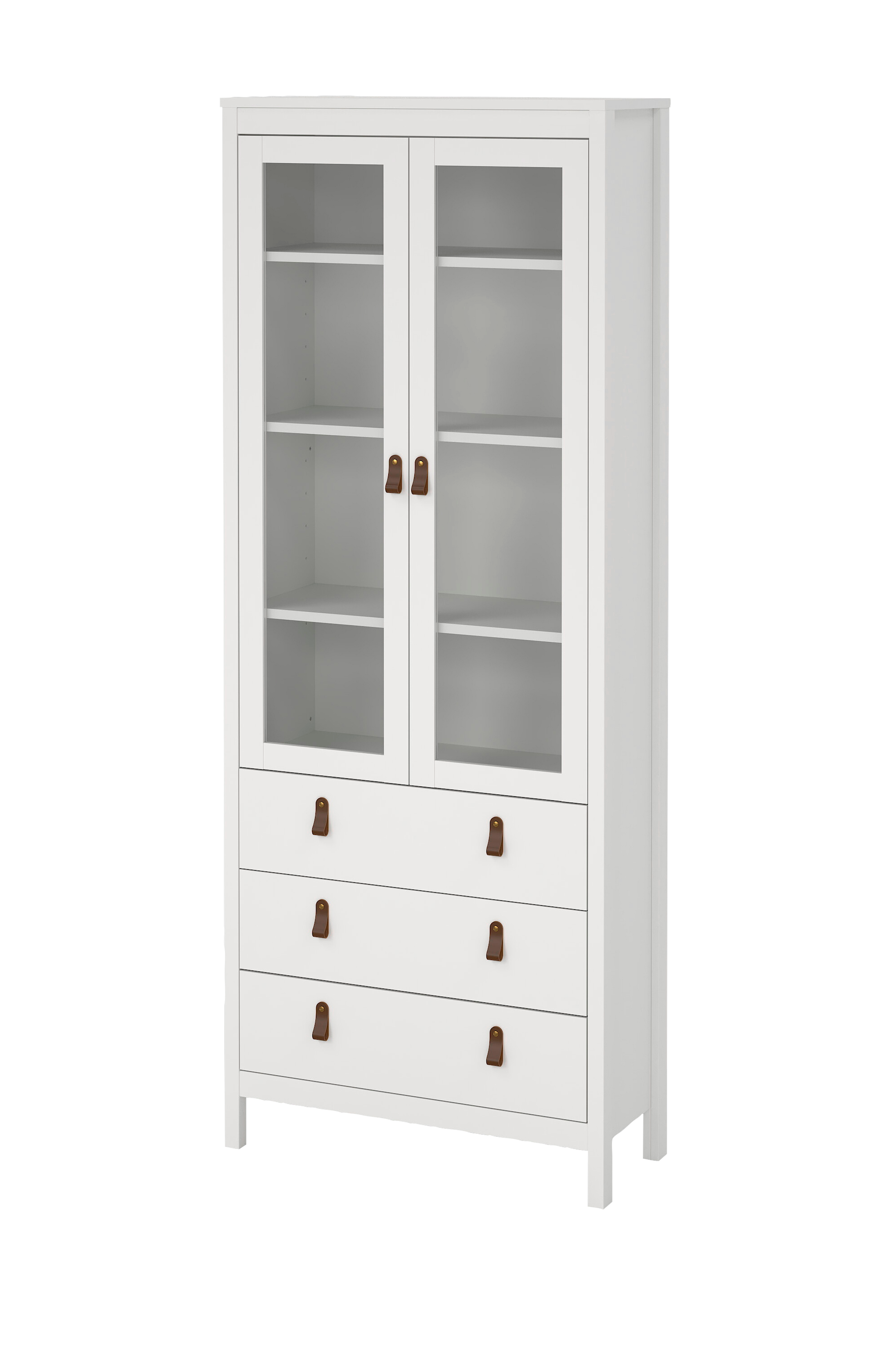 Løft din boligindretning med madrid-porcelænsskabet, hvor moderne stil møder praktisk opbevaring. Skabet har to døre, tre skuffer og tre faste hylder, som giver rigelig opbevaringsplads. Glasdøren tilføjer et strejf af elegance og giver plads til at fremvise dine ting. Der medfølger to håndtag, et læderhåndtag og en knop, til at justere looket.