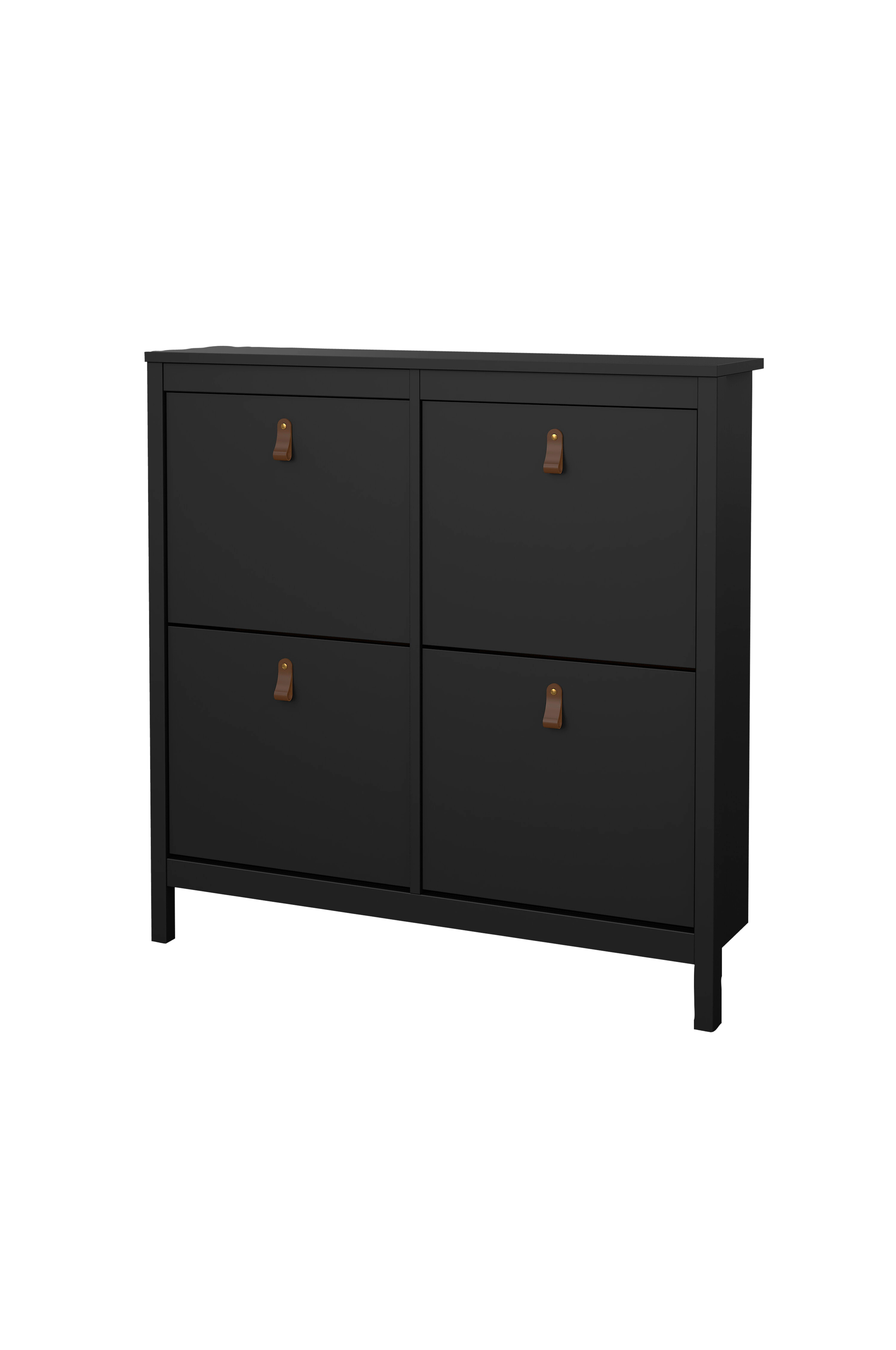Madrid-skoskabet er en alsidig og pladsbesparende opbevaringsløsning til dine sko. Med fire udfoldelige døre tilbyder dette skab en diskret og praktisk måde at holde dine sko pænt skjult på. Det kan rumme op til 16 par sko og sikrer, at dit fodtøj forbliver organiseret og let tilgængeligt. Der medfølger to håndtag, et i læder og et med knop, så du kan justere udseendet.