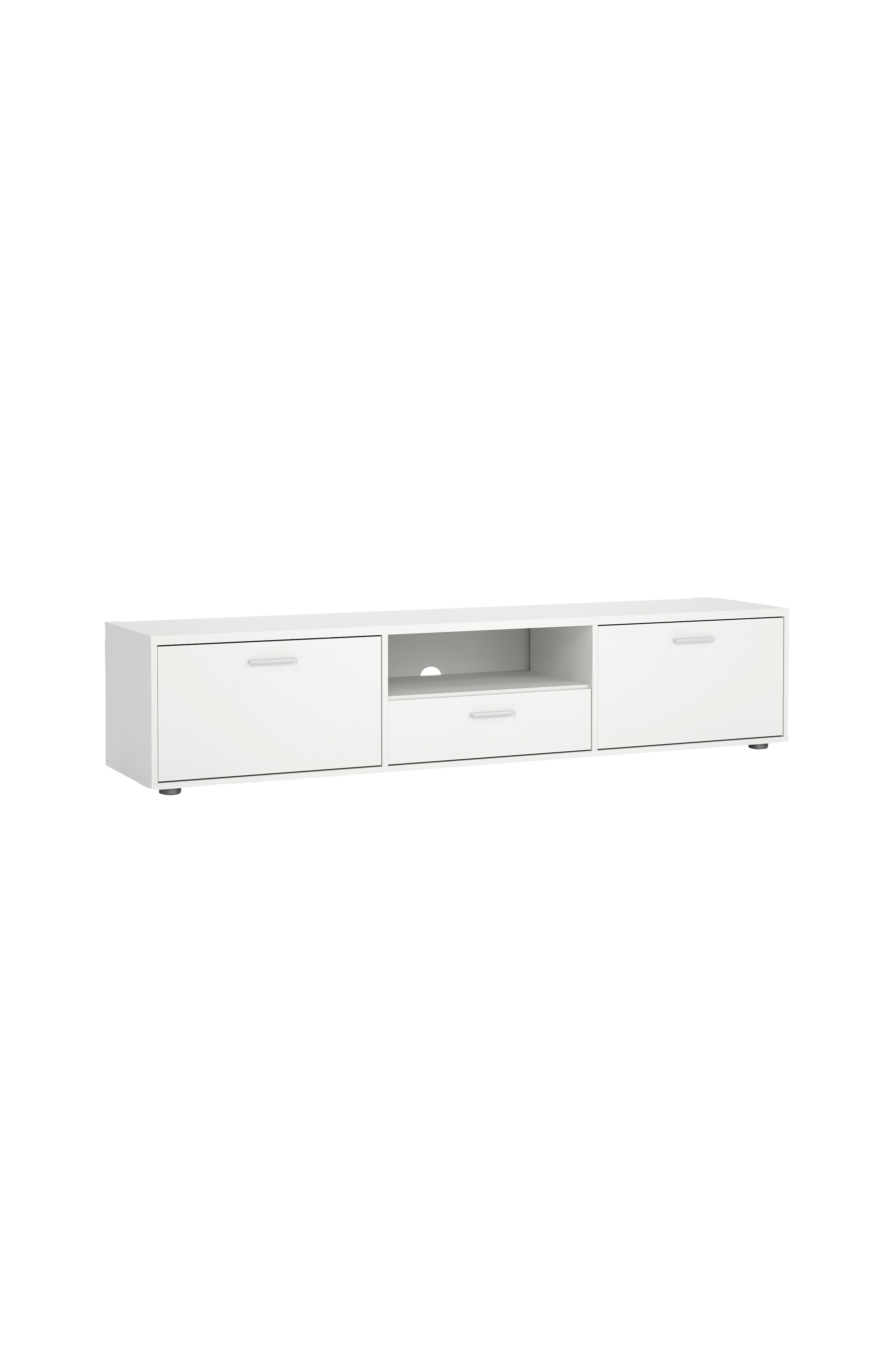 Med sine rene linjer og sit moderne design passer det lave tv-møbel til medier ubesværet ind i enhver indretning. Med to døre og en skuffe, der giver mulighed for opbevaring af medieudstyr og andre ejendele. Det åbne rum med kabelstyring holder dine kabler pæne og skjulte.