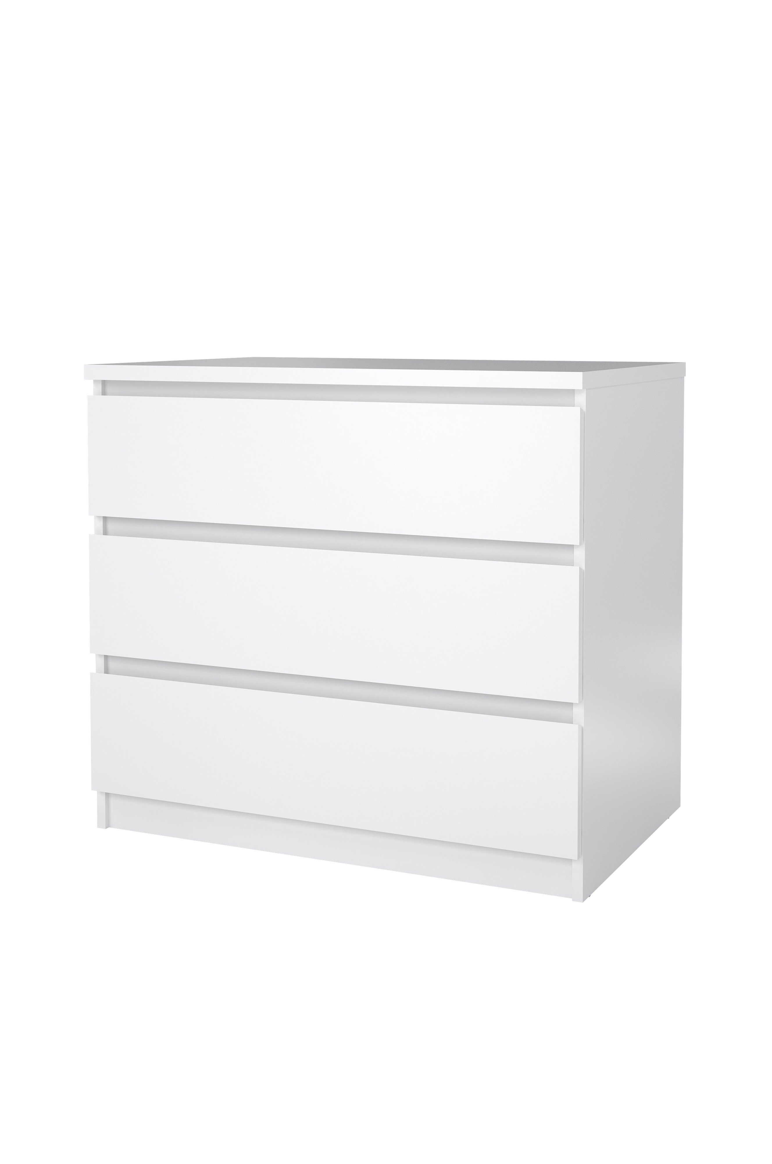 Den moderne og elegante opbevaring kendetegner dette møbel fra tvilum. Med rigelig opbevaring er kommoden med 3 skuffer en nem måde at holde dine ejendele organiseret på. Tre rummelige skuffer kan opbevare forskellige ting, samtidig med at de giver et moderne, funktionelt look, der passer perfekt til enhver indretning og passer perfekt til soveværelset, skabet eller gangen. Med metalskuffeglidere, der giver en jævn bevægelse, er kommoden et robust, men enkelt designet møbel, der giver en moderne og sammenhængende atmosfære. Overfladen er nem at rengøre og modstandsdygtig over for ridser og pletter, hvilket gør den til et ideelt valg til indretningen af familier eller kollegier.