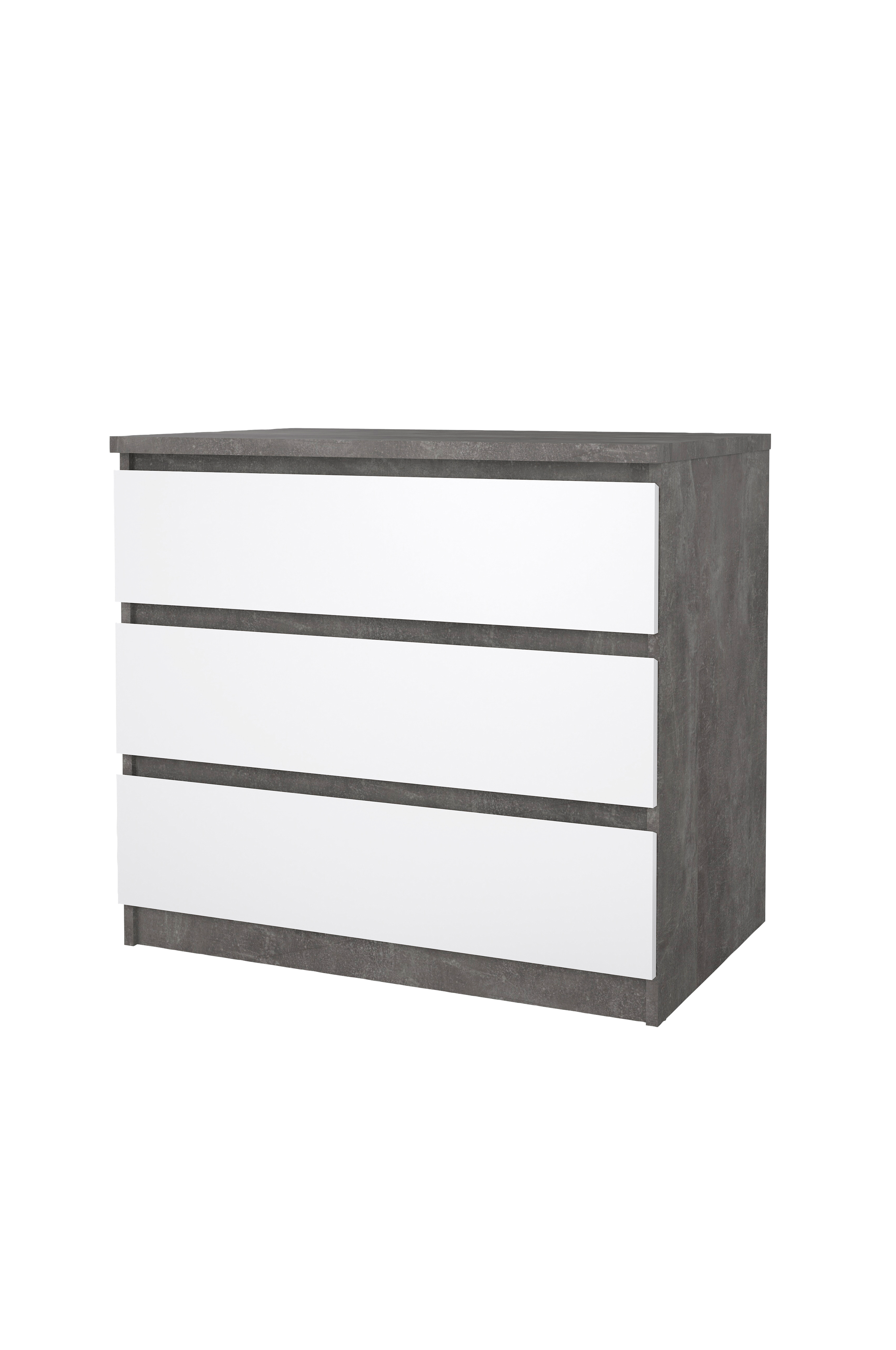Den moderne og elegante opbevaring kendetegner dette møbel fra tvilum. Med rigelig opbevaring er kommoden med 3 skuffer en nem måde at holde dine ejendele organiseret på. Tre rummelige skuffer kan opbevare forskellige ting, samtidig med at de giver et moderne, funktionelt look, der passer perfekt til enhver indretning og passer perfekt til soveværelset, skabet eller gangen. Med metalskuffeglidere, der giver en jævn bevægelse, er kommoden et robust, men enkelt designet møbel, der giver en moderne og sammenhængende atmosfære. Overfladen er nem at rengøre og modstandsdygtig over for ridser og pletter, hvilket gør den til et ideelt valg til indretningen af familier eller kollegier.