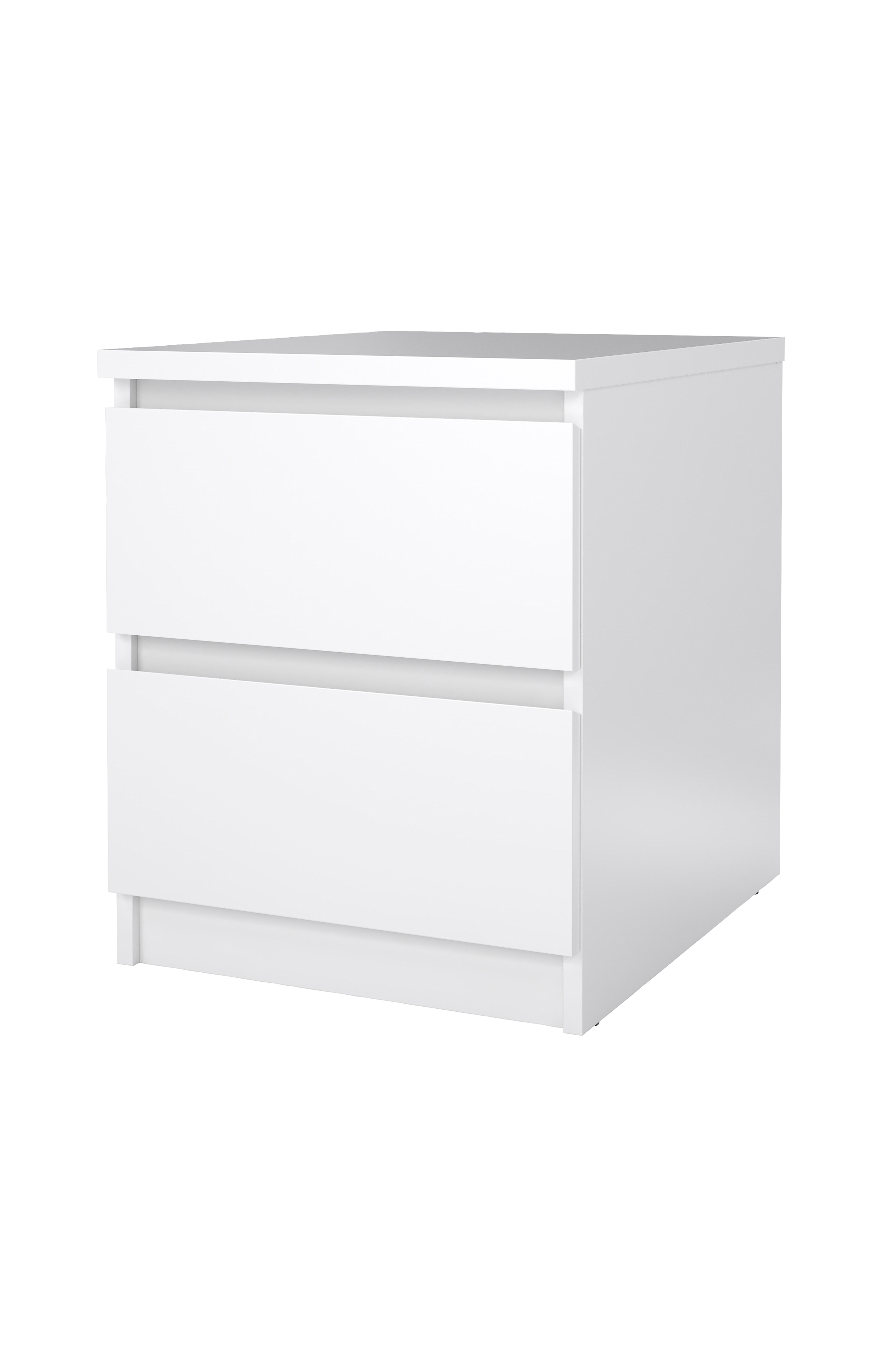 Natborde bliver ofte centrum for det daglige liv i et soveværelse. Med plads til en lampe, et vækkeur, en bestseller, en mobiltelefon eller andre nødvendige ting inden for rækkevidde er natbordet med 2 skuffer en vigtig organisatorisk komponent i dit værelse. Det moderne design giver en moderne og sammenhængende atmosfære. To skuffeudtræk i metal giver mulighed for at gemme det nødvendige væk. Det enkle design er perfekt til brug sammen med lave senge eller i mindre rum og passer ind i mange forskellige indretninger. Foliefinishen er nem at rengøre og modstandsdygtig over for pletter og ridser, hvilket gør sengebordet til et ideelt valg for familier eller studerende.