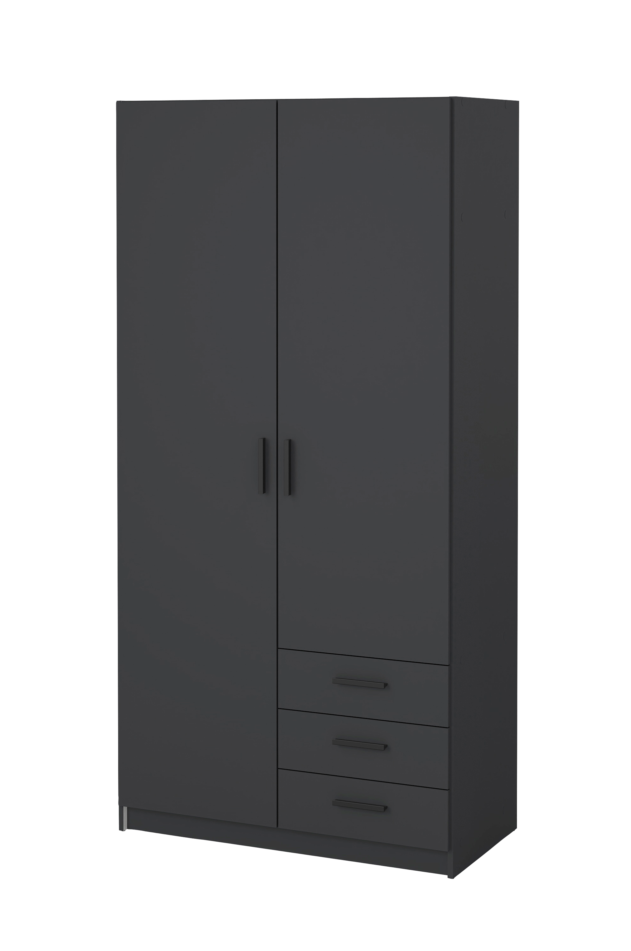 Sprint-garderoben er en funktionel og rummelig opbevaringsløsning med to hængslede døre, en bøjlestang og tre skuffer. Det har fire hylder, to justerbare og to faste, som giver alsidig plads til tøj og andre vigtige ting. Det er designet til at være praktisk og passer perfekt til ethvert moderne hjem.