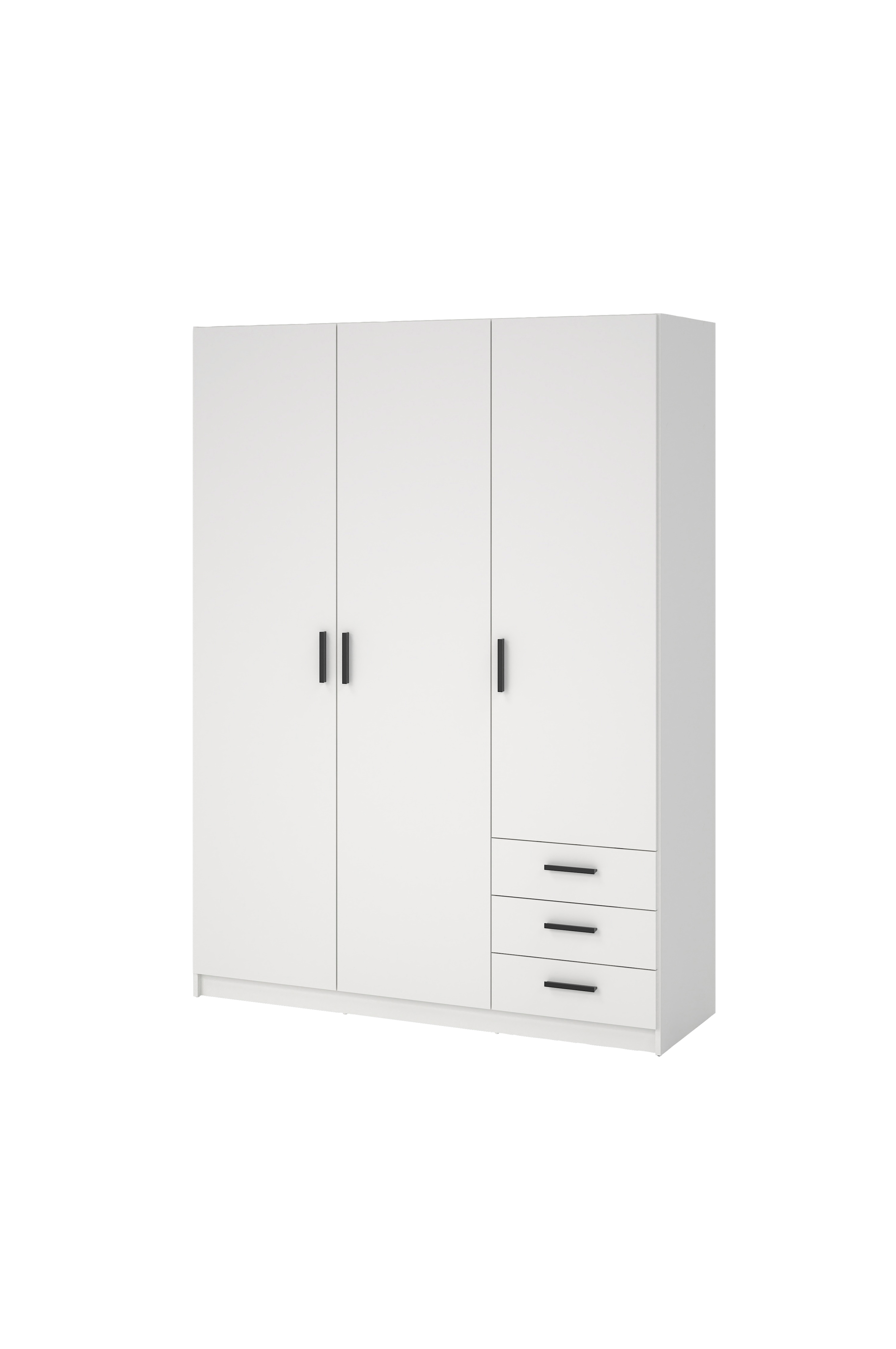 Sprint-garderoben er en funktionel og rummelig opbevaringsløsning med tre hængslede døre, en bøjlestang og tre skuffer. Det har fire hylder, to justerbare og to faste, som giver alsidig plads til tøj og andre ting. Det er designet til at være praktisk og passer perfekt til ethvert moderne hjem.