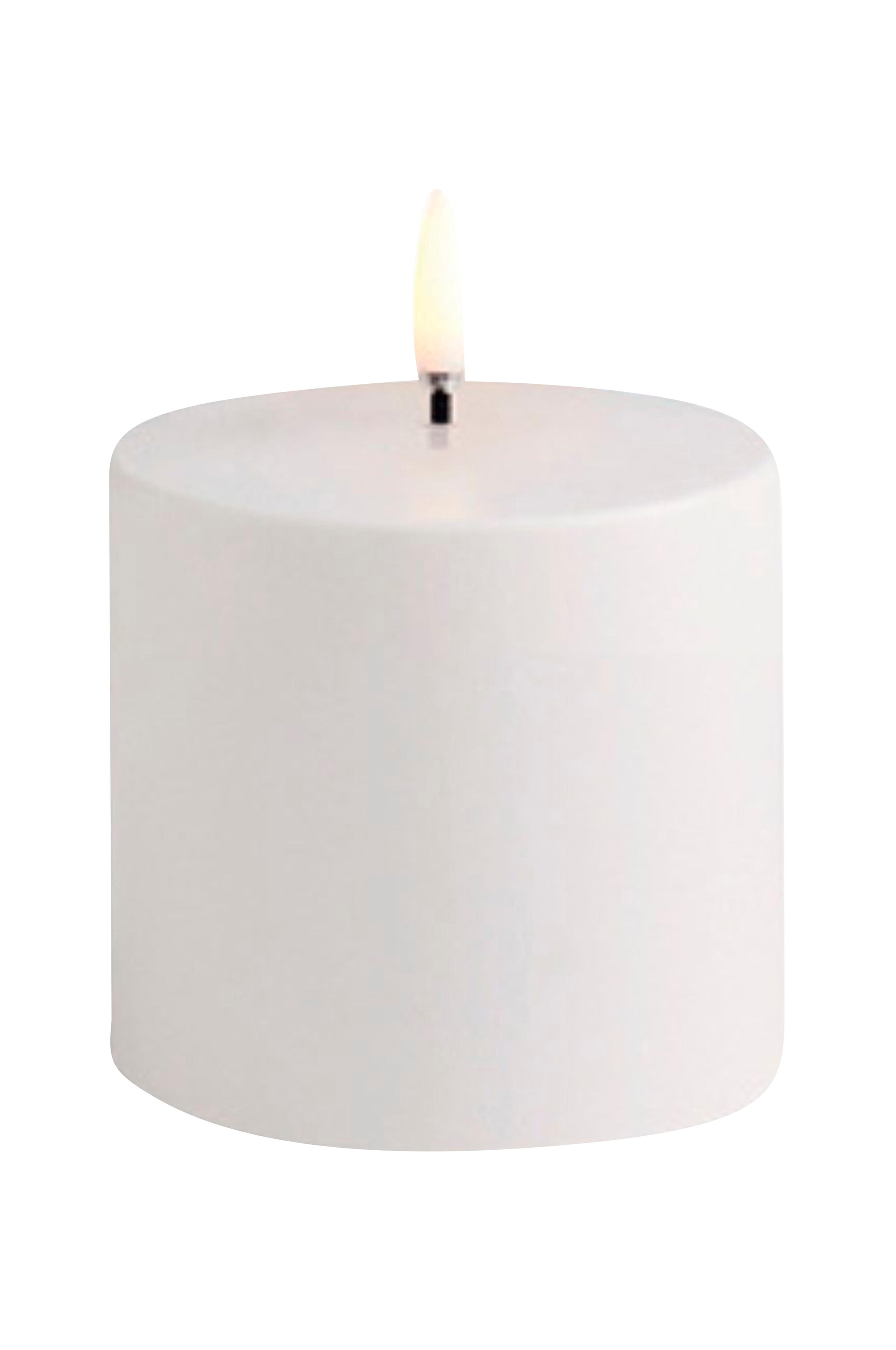 Uyuni LED-bloklys til udendørs brug. Uyuni-lysene har et blødt flimrende LED-lys på toppen, og denne model er unikt skabt til at blive placeret udendørs. Du får den skønne atmosfære som levende lys giver, men uden de skadelige kemikalier som almindelige stearinlys kan afgive. Mål: 7,8x7,8 cm ekskl. led-flamme 2,8 cm. Batterier: 2 xc (medfølger ikke) 1000+ timers batteritid, afgiver ingen duft. Indbygget timer på 6 timer. Patenteret LED-lys med 3D-flamme Flere valg med fjernbetjening Dæmpbar i tre trin Fire timerindstillinger: 4, 6, 8 og 10 timer (fjernbetjening købes separat)