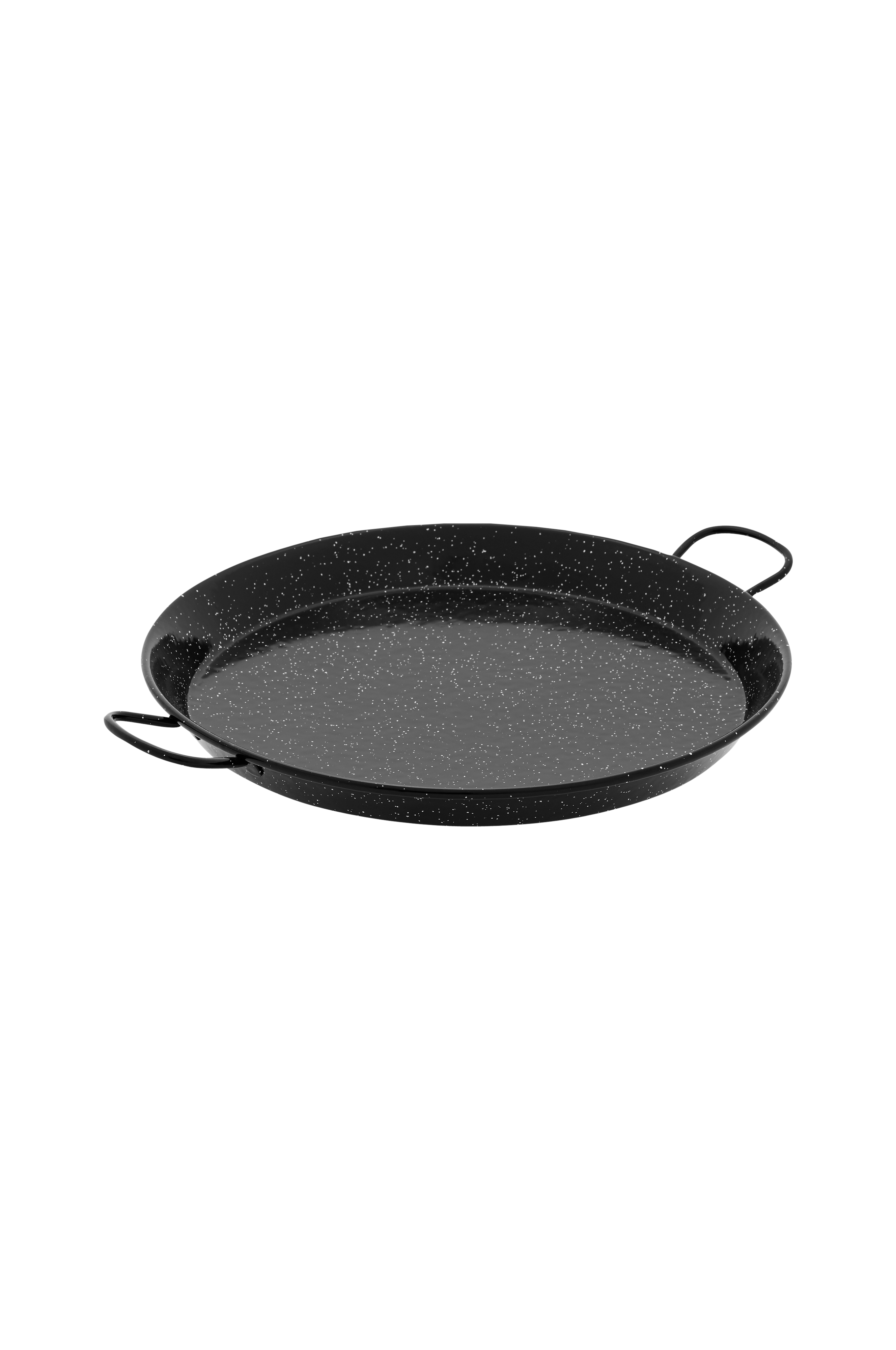 vaellos paellapander er lavet af emaljeret stål. Det er den autentiske paellapande, der bruges til at lave traditionel paella. Vores paellapander er nemme at rengøre og vedligeholde og har 2 håndtag, som er ergonomisk udformet for at give maksimal madlavningskomfort. Sørg for at tørre paellapanden med et håndklæde efter vask, og gnid lidt olie på den for at forhindre, at der opstår rust.