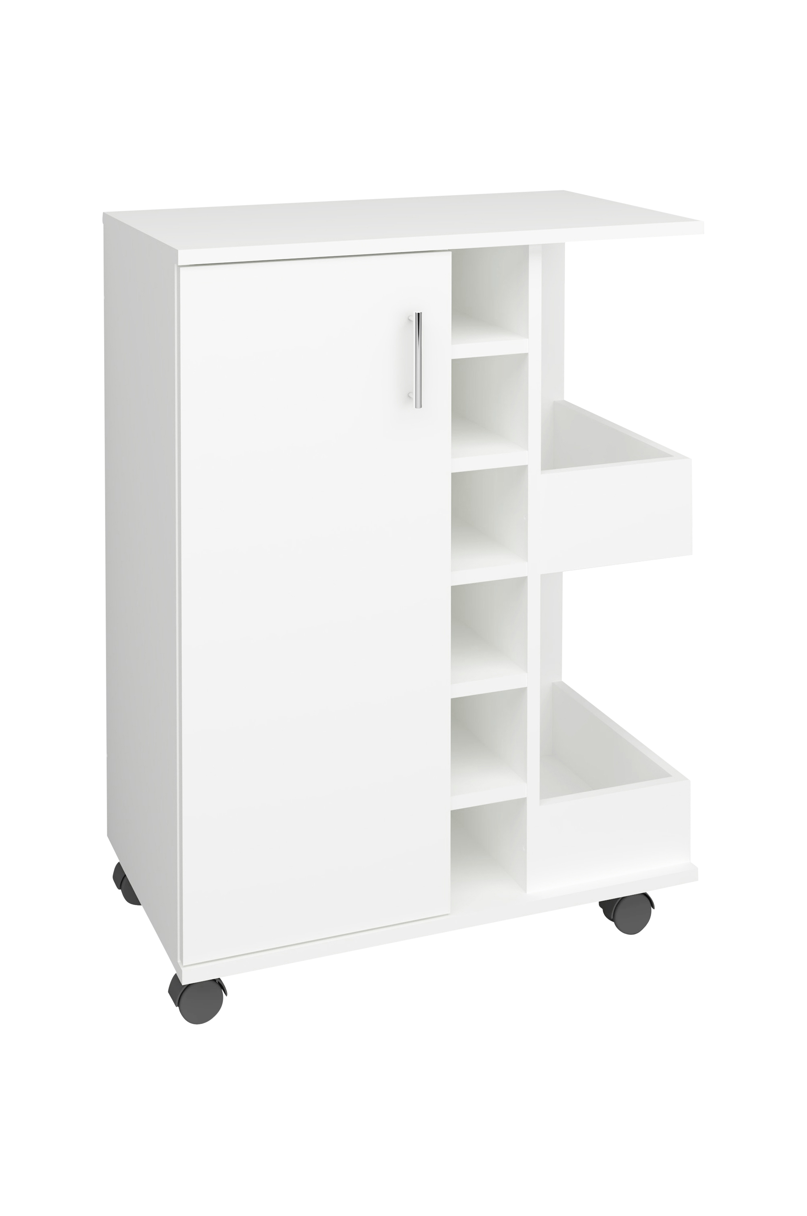 Praktisk og rummelig køkkenvogn til ekstra opbevaringsplads i køkkenet. Tre skuffer og tre åbne rum gør den mobile serveringsvogn til et opbevaringsmirakel.