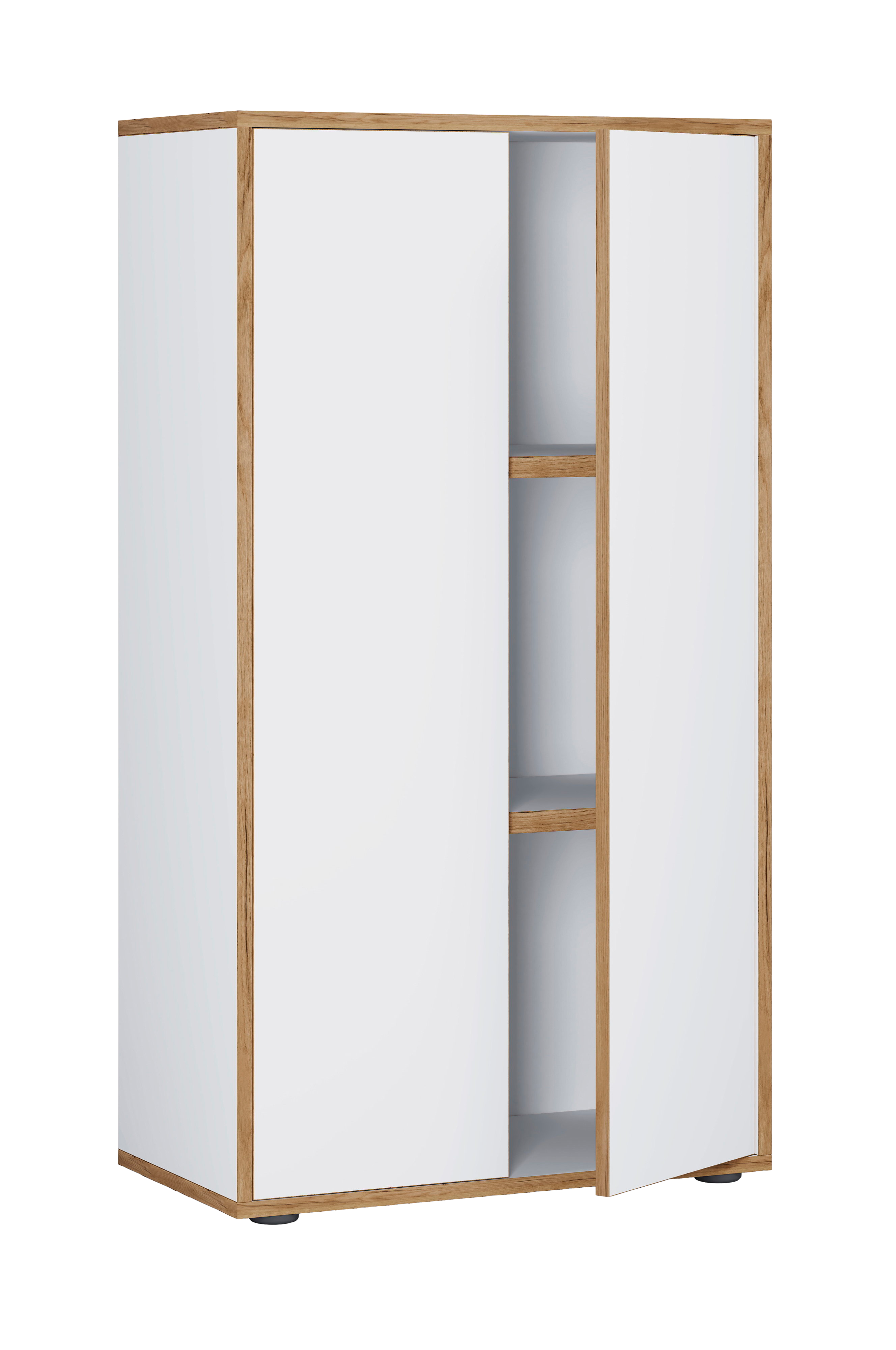 Møblet er lavet af robust træ og har et tidløst design. Hyldeoverfladen har en robust melaminharpiksbelægning. Det gør kommoden nem at rengøre og sikrer en lang levetid. Skænken har to hængslede døre, som giver lukket opbevaringsplads. Hylderne er højdejusterbare og kan derfor tilpasses individuelle behov.