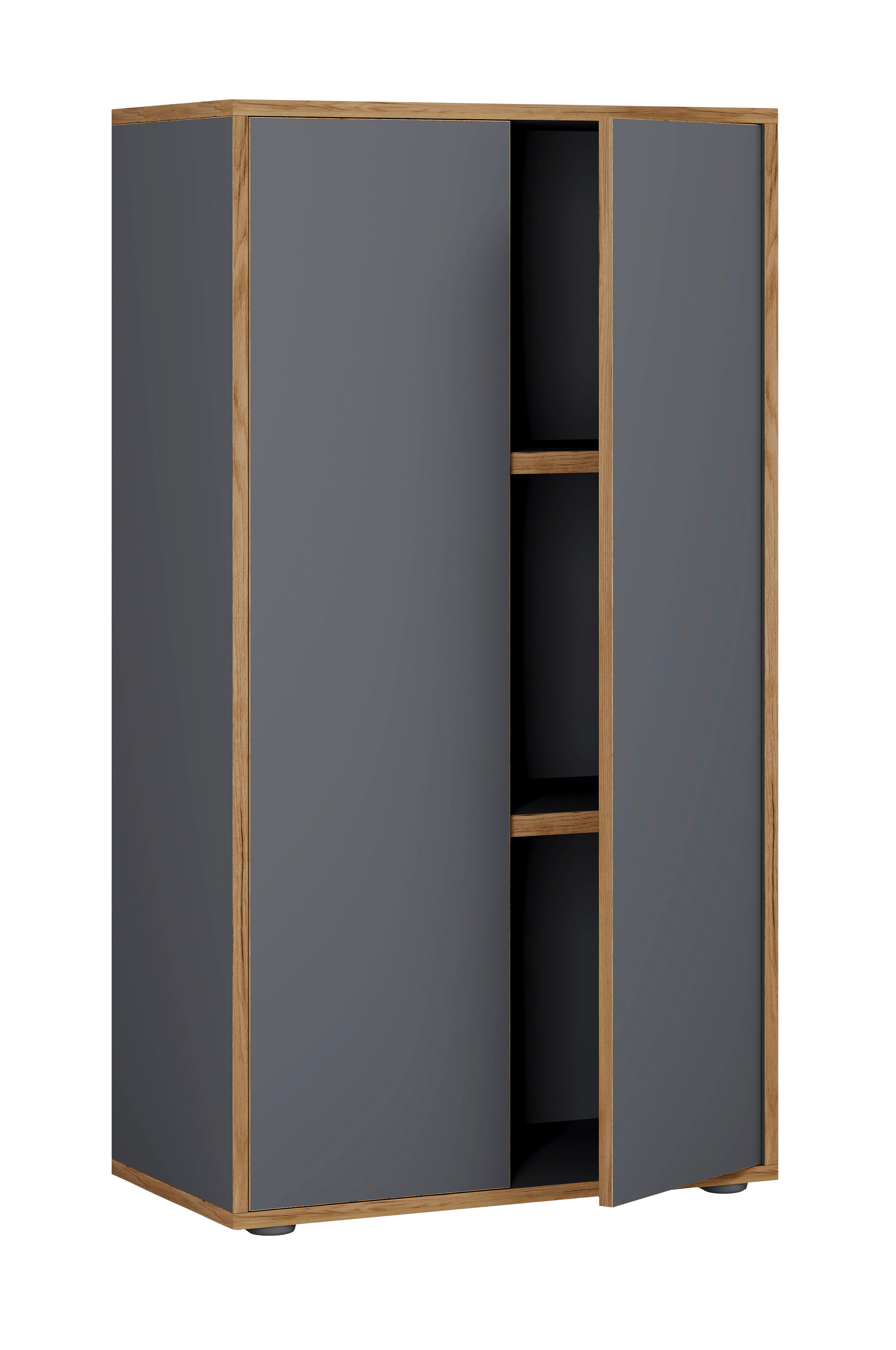 Møblet er lavet af robust træ og har et tidløst design. Hyldeoverfladen har en robust melaminharpiksbelægning. Det gør kommoden nem at rengøre og sikrer en lang levetid. Skænken har to hængslede døre, som giver lukket opbevaringsplads. Hylderne er højdejusterbare og kan derfor tilpasses individuelle behov.