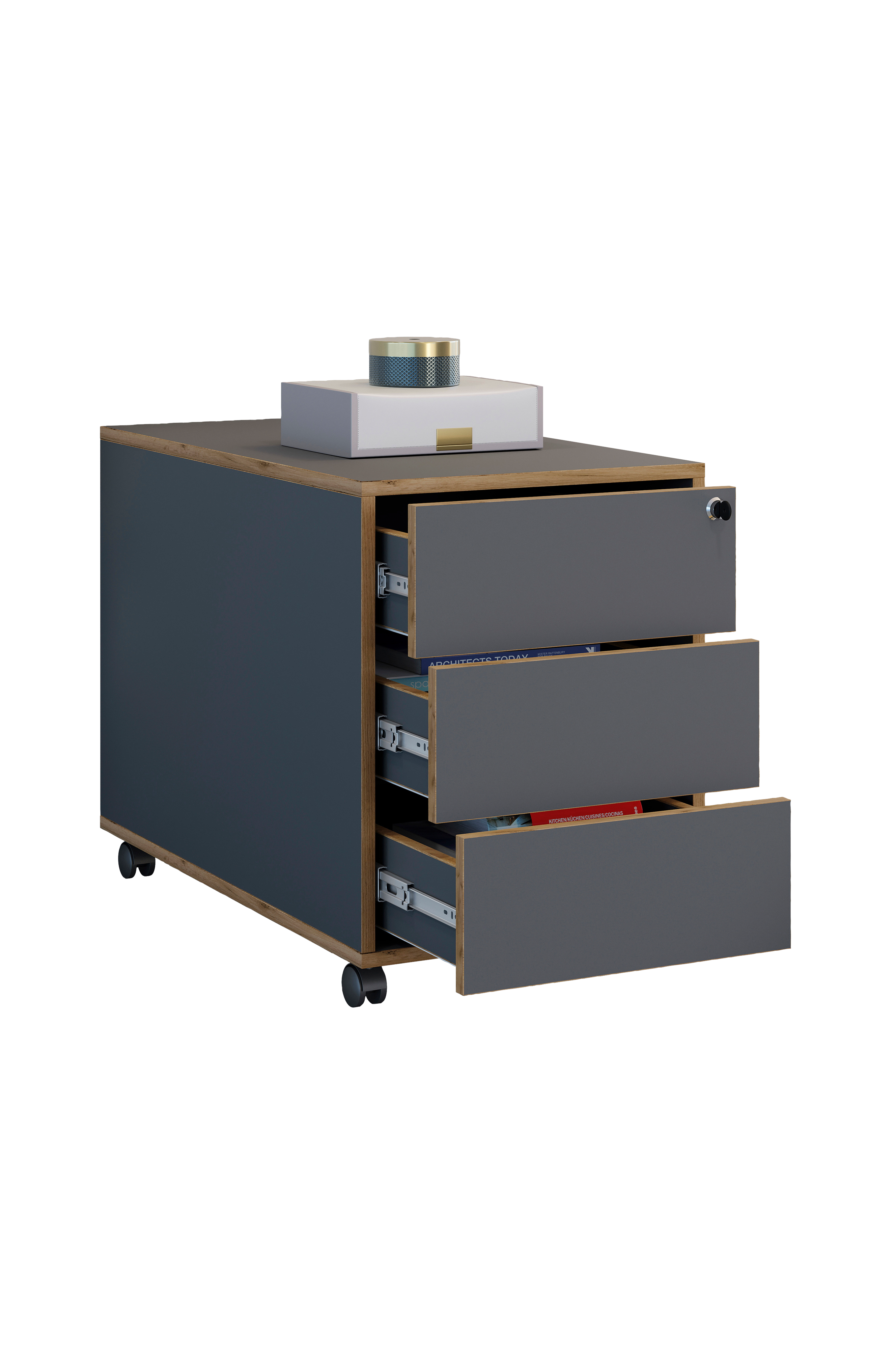 Under udviklingen blev der lagt vægt på, at skufferne giver masser af praktisk opbevaringsplads og ser særligt elegante ud med en push-to-open-funktion uden håndtag. Takket være to medfølgende nøgler kan kontormøblet låses, hvis det er nødvendigt.