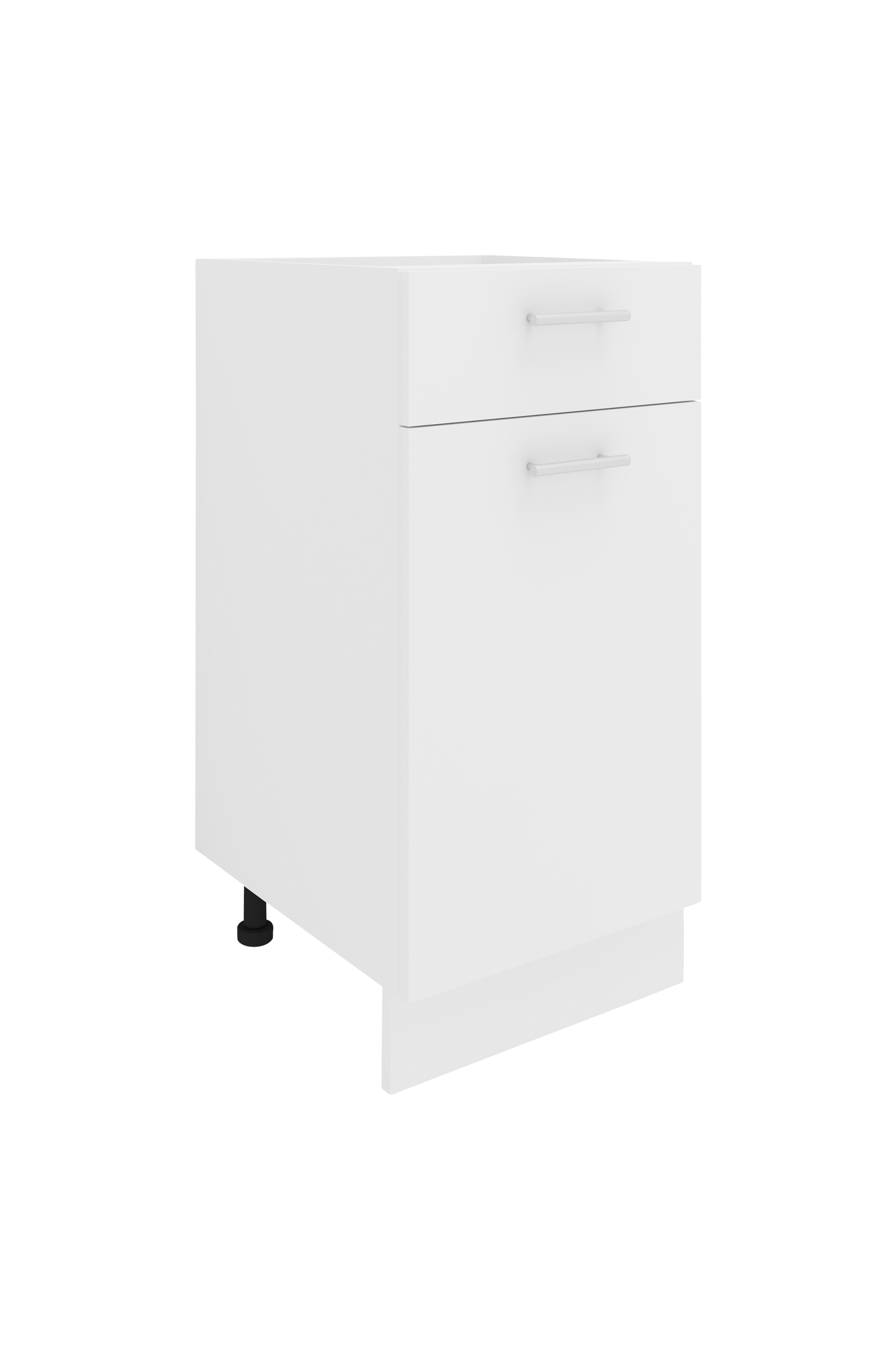 vcm-køkkenskabet med en drejelig door og en drawer er særligt moderne og giver masser af opbevaringsplads til køkkenredskaber. Korpus er 16 mm tykt og derfor særligt stabilt.