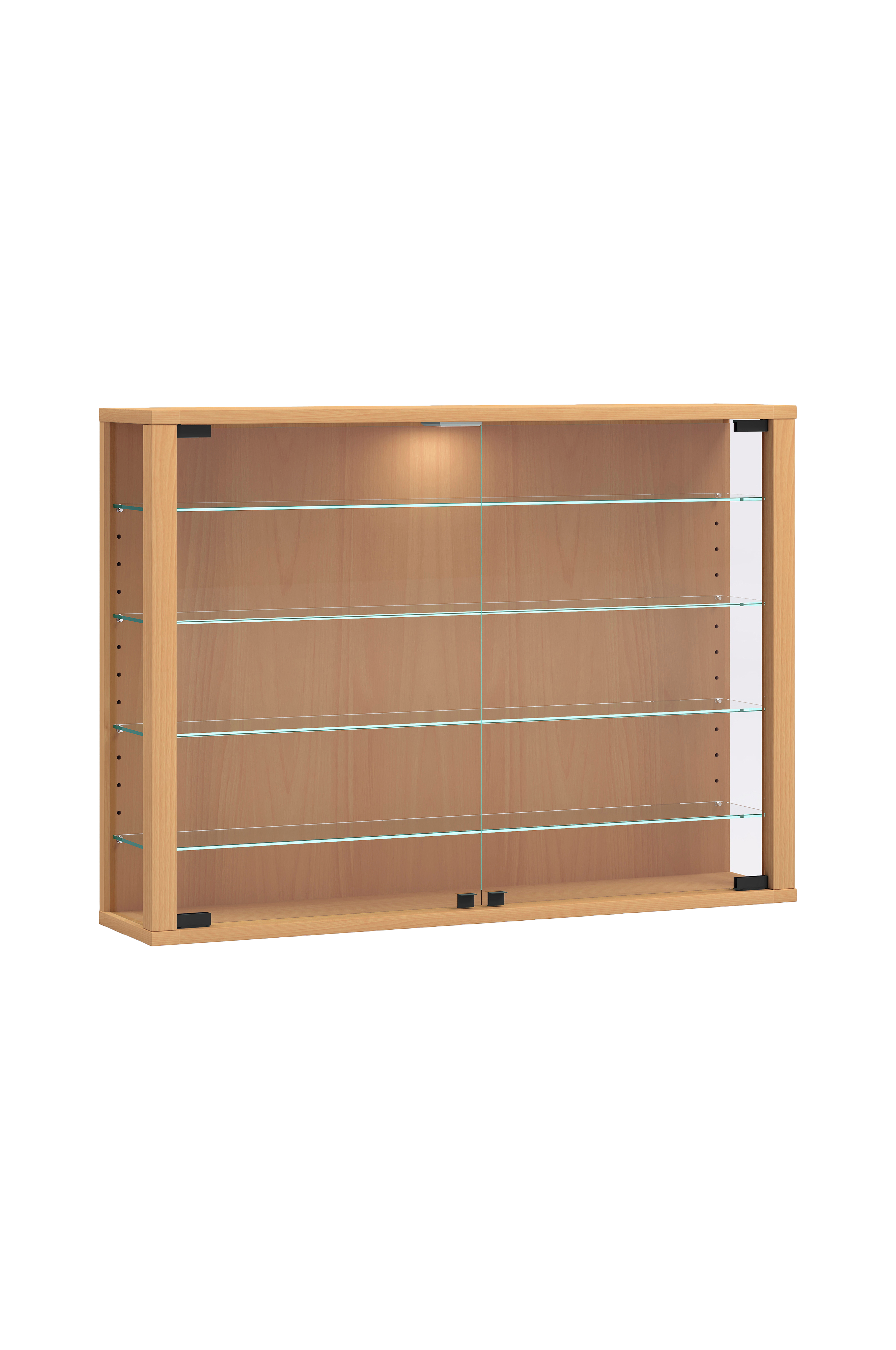 Designeren har brugt robuste træbaserede materialer til kroppen. Dørene er lavet af hærdet sikkerhedsglas, som giver øget slag- og stødmodstand. Vitrineskabet forvandler enhver væg til et absolut blikfang.