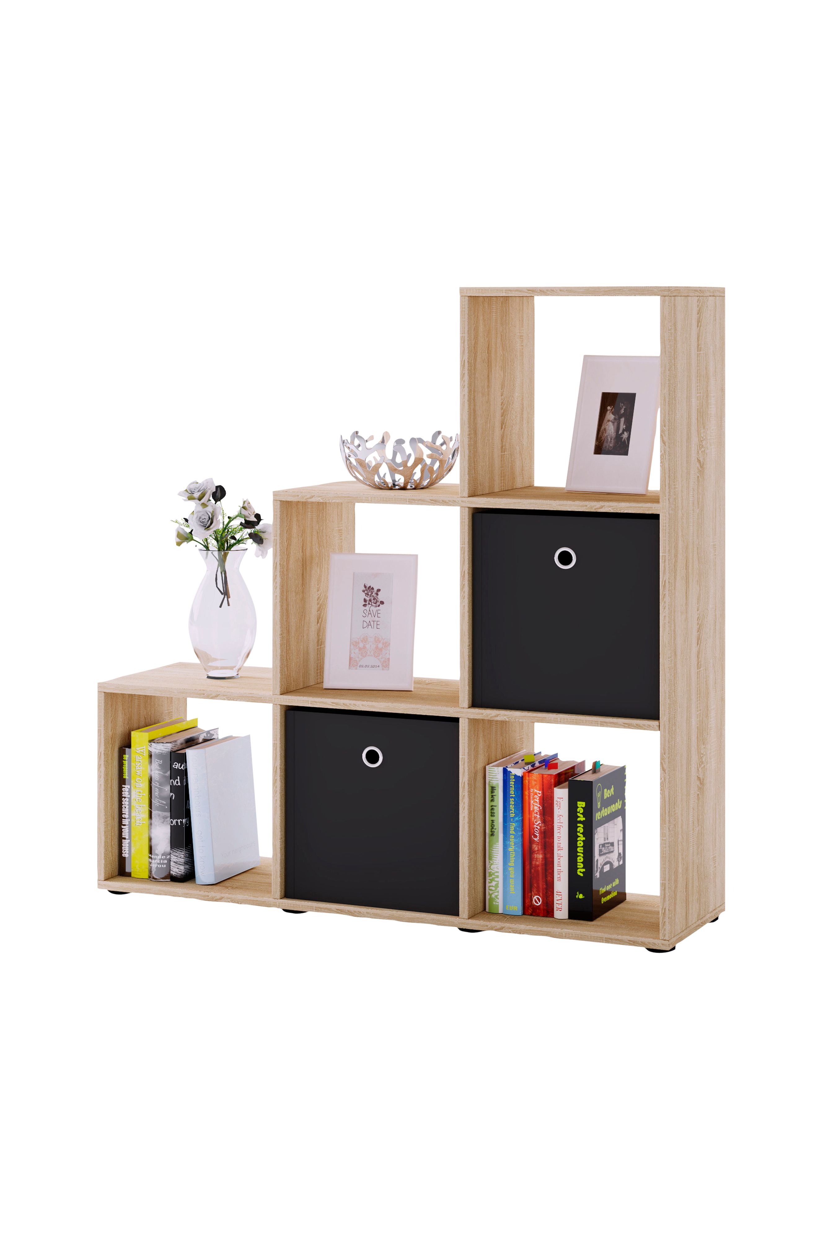 - moderne trappehylde med 6 rummelige rum