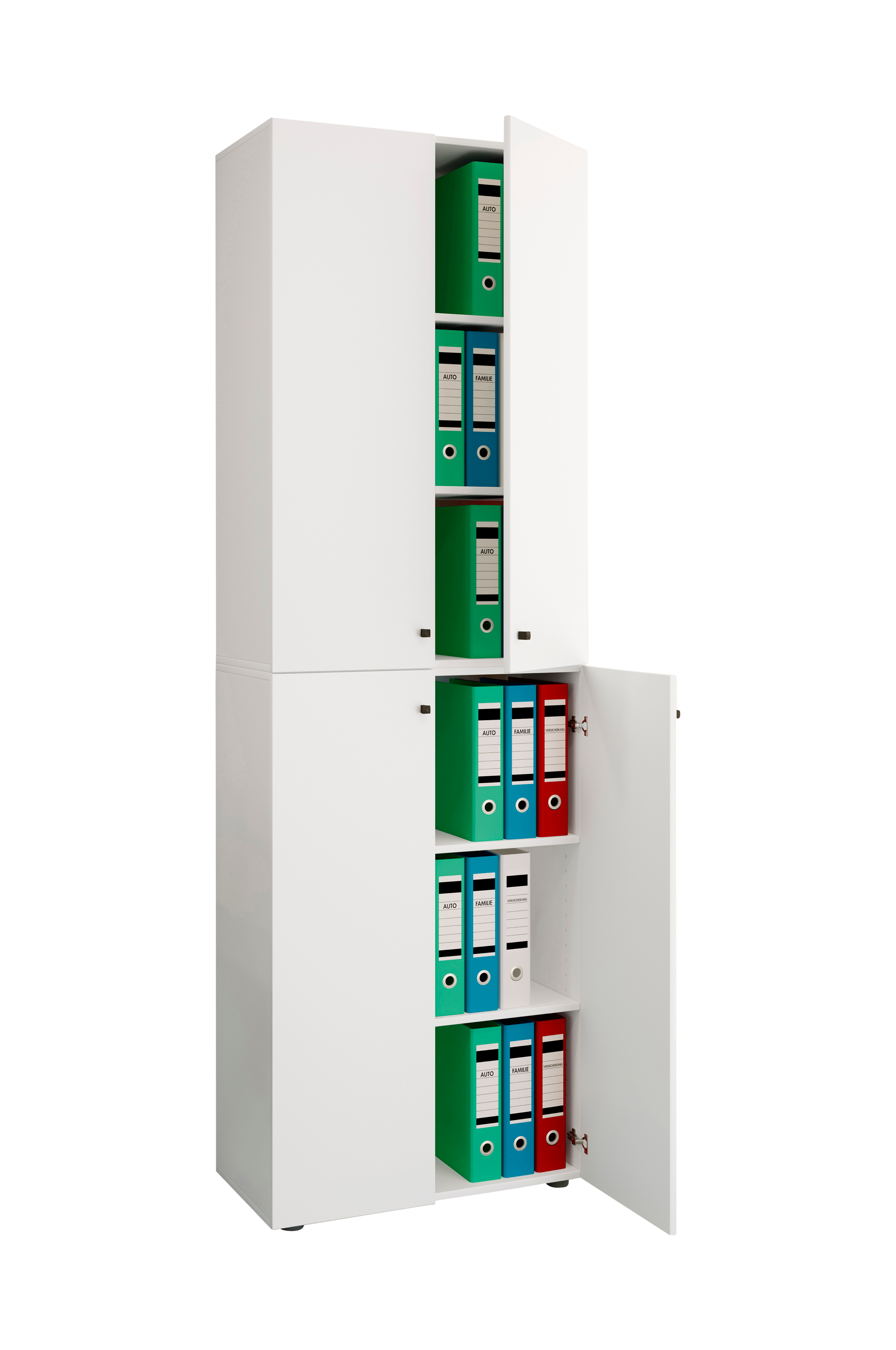vcm "lona xl reol med fire hængslede døre" har fire variable hylder og plads til ca. 42 mapper og andre redskaber. Skabet kan kombineres med andre møbler fra serien "vcm lona ".