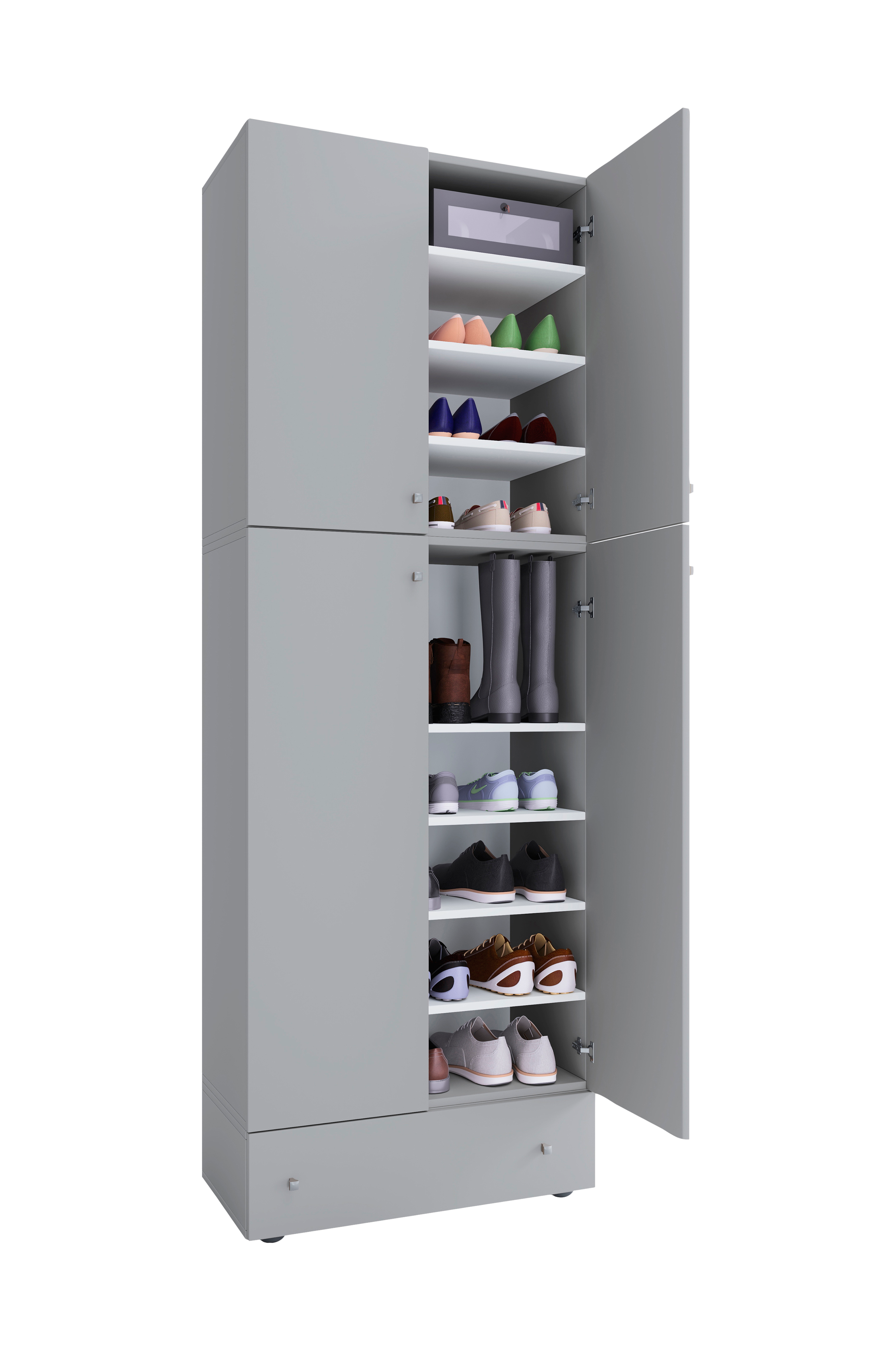 vcm skoskabet "lona xxl " skiller sig ikke kun ud på grund af sit tidløse design og den høje kvalitet i udførelsen. Masser af plads til dine sko tilbyder dig lige så ni rum og en skuffe.