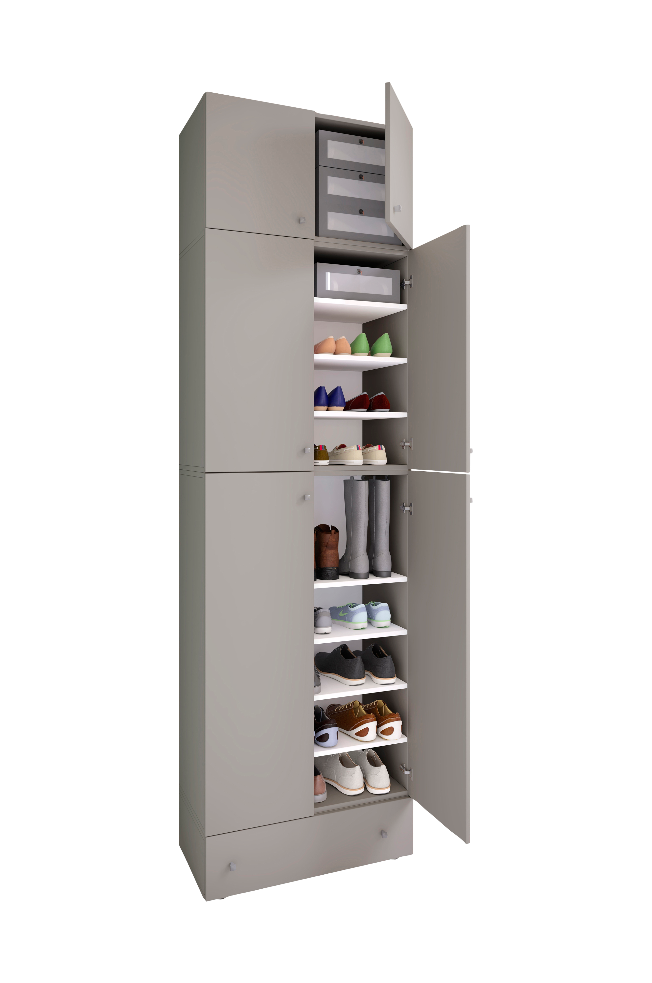 vcm skoskabet "lona xxl " skiller sig ikke kun ud på grund af sit tidløse design og høje kvalitet. Masser af plads til dine sko tilbyder dig lige så ti rum og en skuffe.