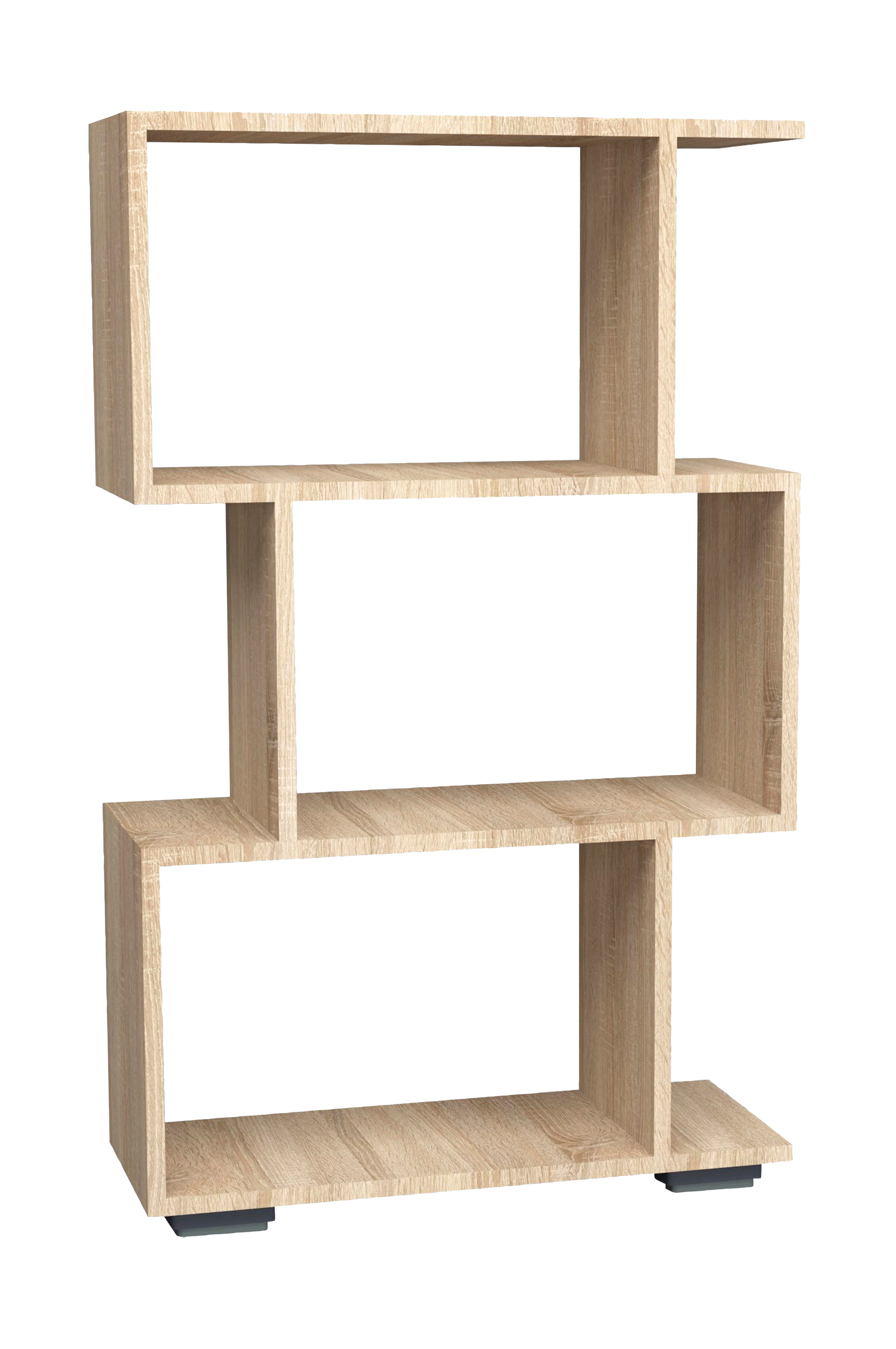 Den s-formede "palusa m"-hylde tilbyder tre niveauer af opbevaring til bøger, planter eller billeder og giver rummet et nyt look.