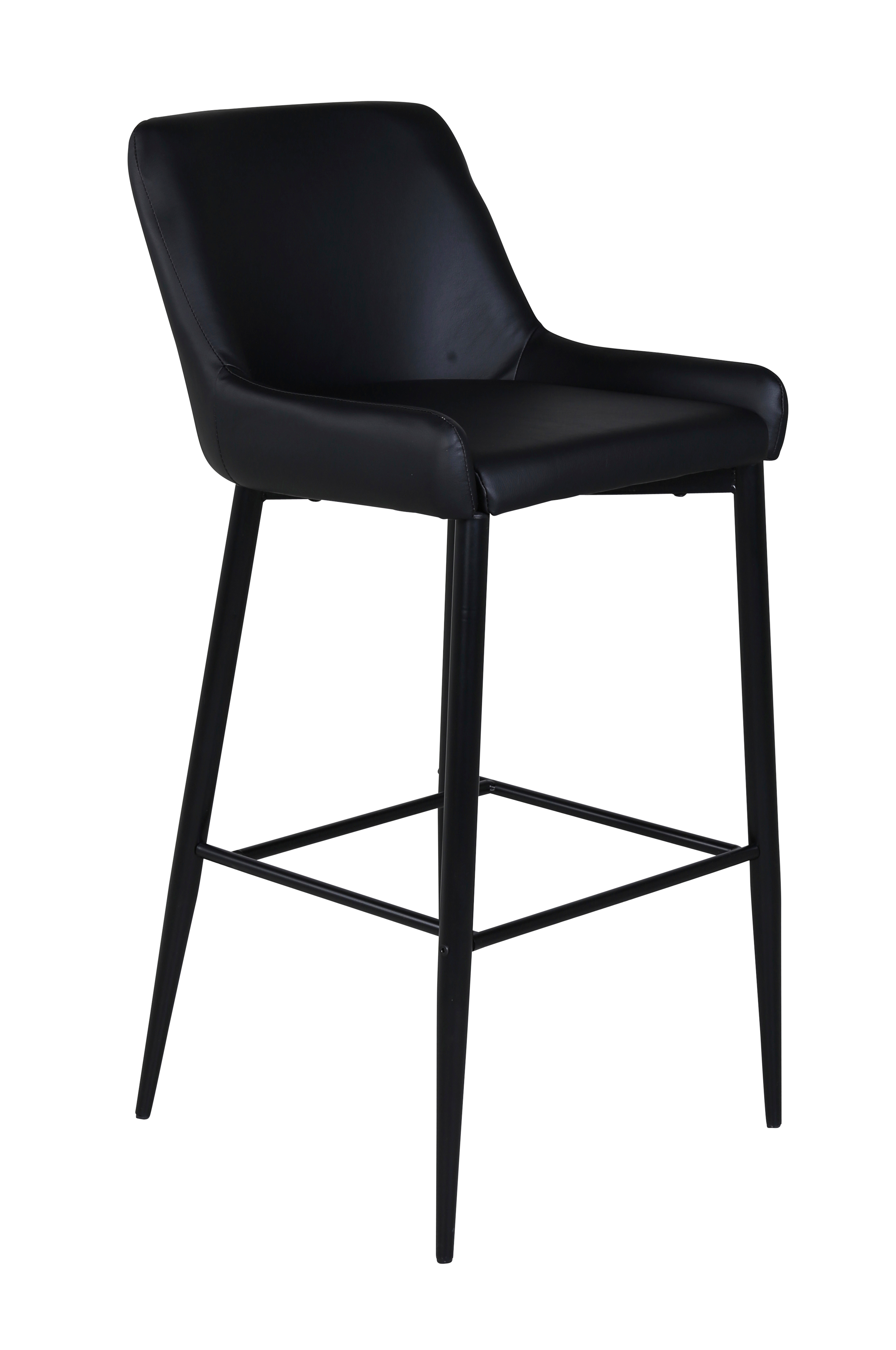 Plaza barstol i 2-pak med sæde i kunstlæder, stof eller velour og stoleben i jern. Stolenes mål: Siddedybde: 44 cm, siddebredde: 49 cm, siddehøjde: 74 cm. Stolen kræver let montering.