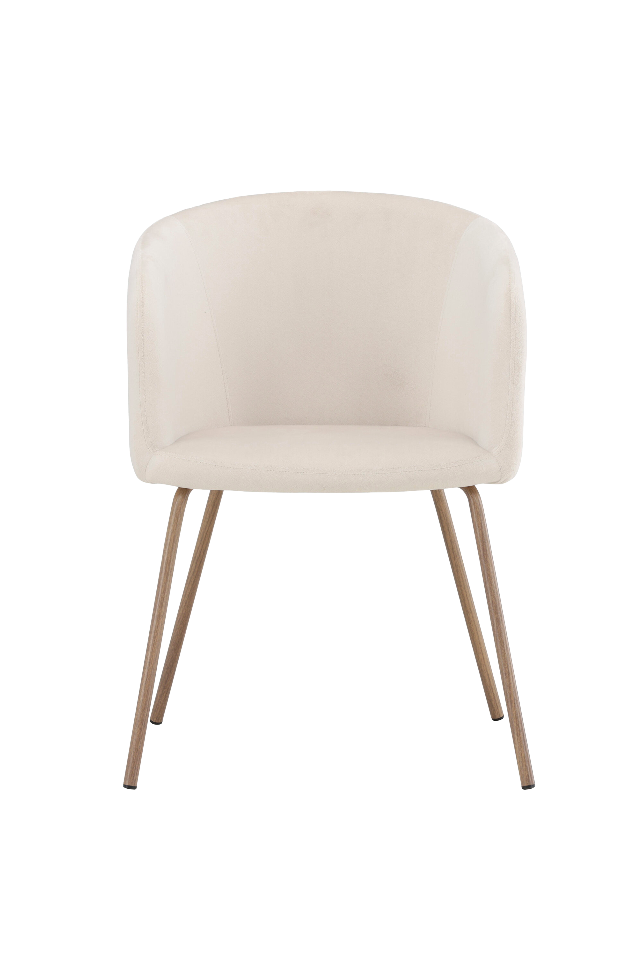 Berit er en elegant spisebordsstol, der kombinerer komfort med moderne æstetik. Stolen har træfarvede ben i holdbart stål, som giver både stabilitet og et varmt, naturligt look. Sædet er betrukket med et blødt, beige fløjlsstof, der giver en indbydende fornemmelse og passer perfekt ind i de fleste hjem. Med sin generøse siddekomfort er berit en stol, du gerne vil blive siddende i - uanset om det er til middage, samtaler eller lange kaffepauser.