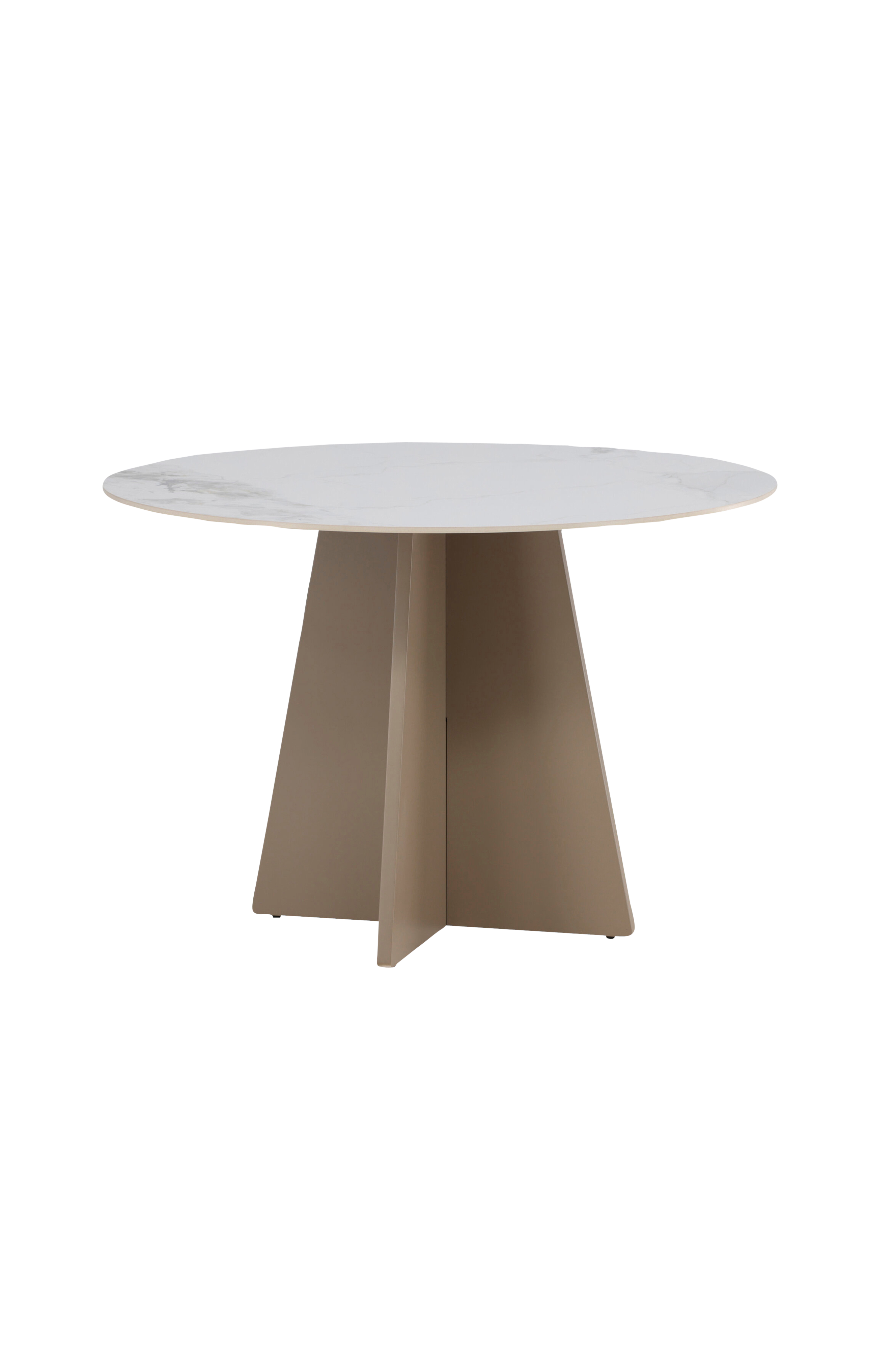 Bootcut er et elegant spisebord med et design, der er indbegrebet af moderne skandinavisk stil. Den generøse bordplade på 110 cm i diameter er lavet af sintret sten med et sofistikeret beige marmorlook - en farve, der bringer ro og varme til rummet. Mdf-basen giver et robust fundament, mens formen giver en unik karakter. Et bord, der er lige så smukt, som det er funktionelt - perfekt til det stilbevidste hjem.