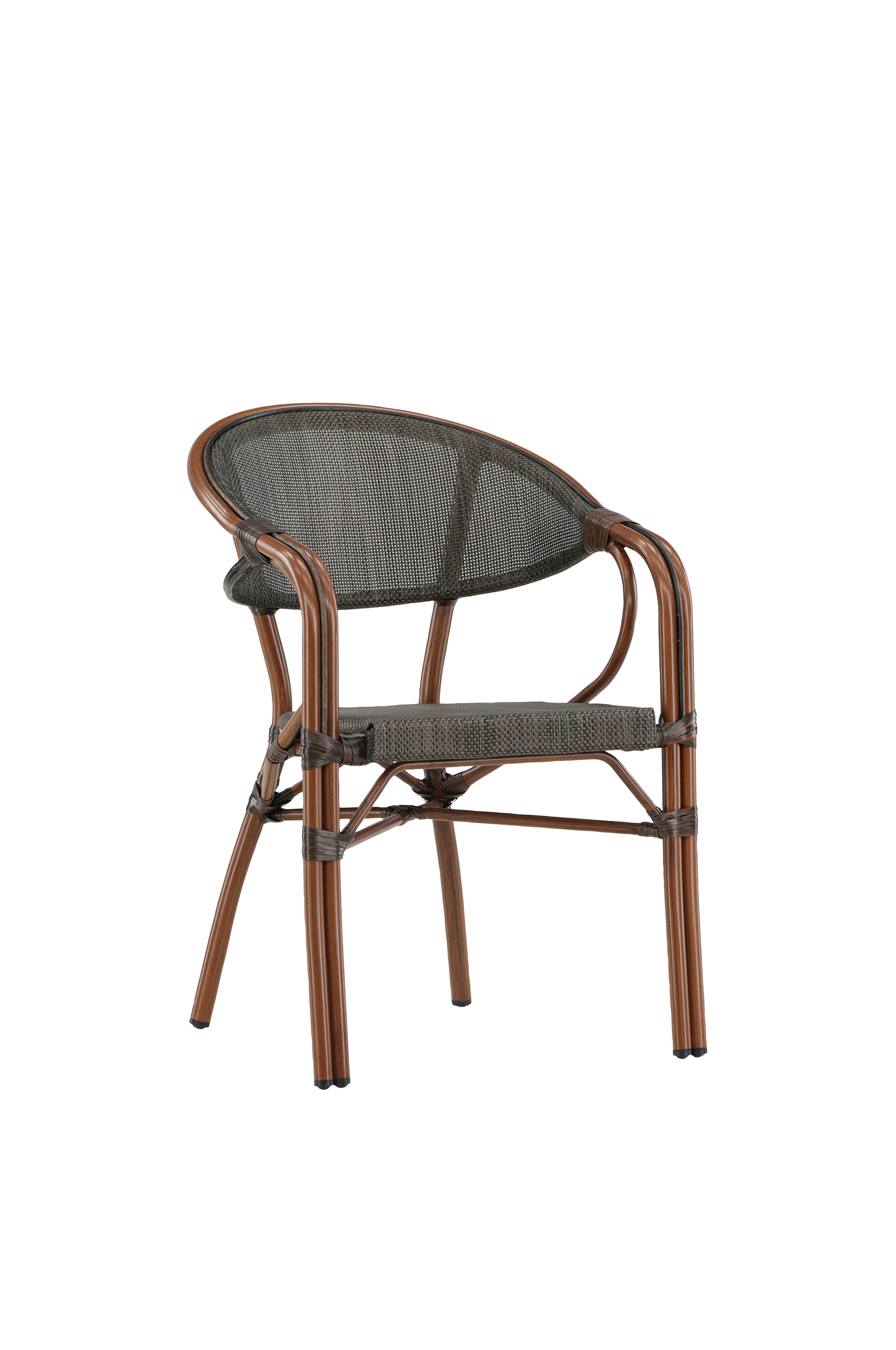 Stolen har et smagfuldt armlæn, der giver ekstra komfort, hvilket gør den perfekt til lange samtaler, kaffestunder og afslappede udendørs måltider.