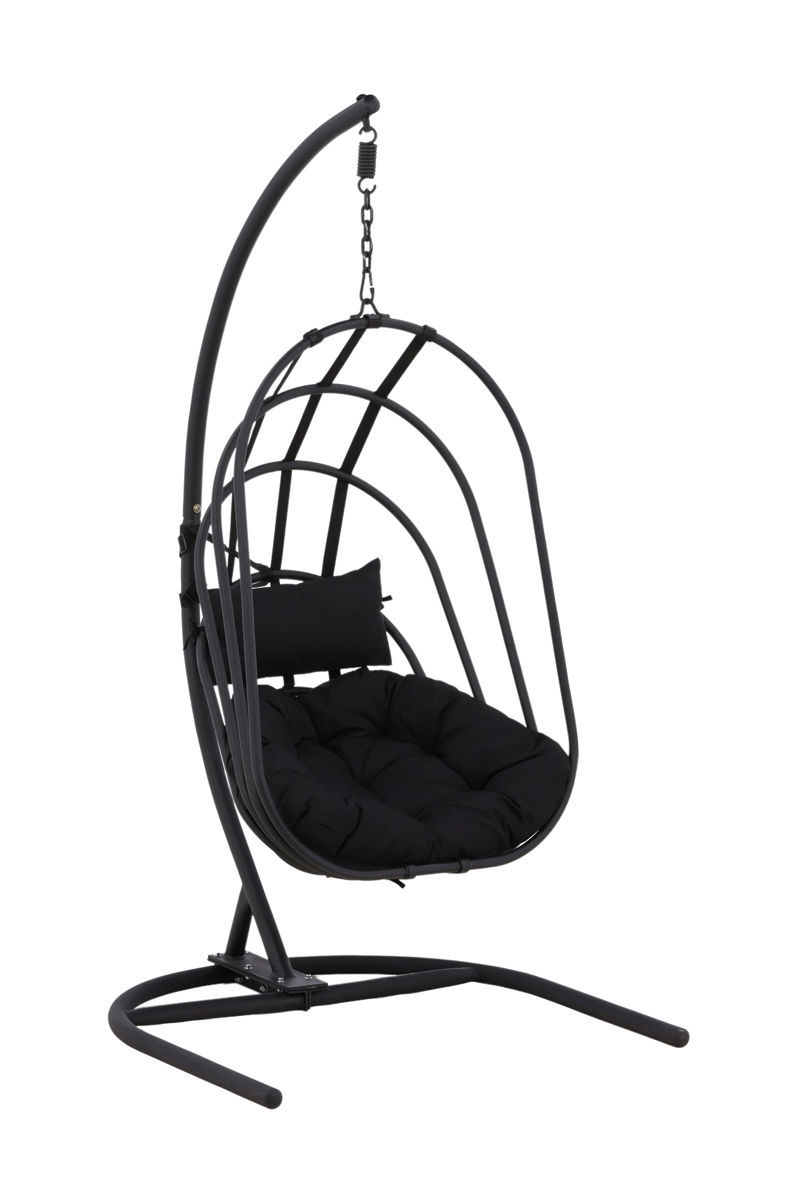 Oplev total afslapning med vores elegante hængestol Panay. Panay er lavet af robust stål og har en sofistikeret farve og er det perfekte sted, hvor du kan slappe af og nyde det udendørs miljø. Panay er en hængestol, der nemt kan placeres hvor som helst takket være det praktiske stativ. Det betyder, at du kan skabe dit eget fredelige hjørne i haven, på terrassen, eller hvor du nu foretrækker det. Hængestolen leveres komplet med en behagelig sæde- og ryghynde i polyester, begge i en matchende sort farve. Du kan synke ned i panay og slappe af, mens du nyder den omgivende natur eller en god bog. Med panay kan du skabe et behageligt og stilfuldt udendørs afslapningssted. Vælg panay, og lad den blive dit nye yndlingssted for afslapning og nydelse.