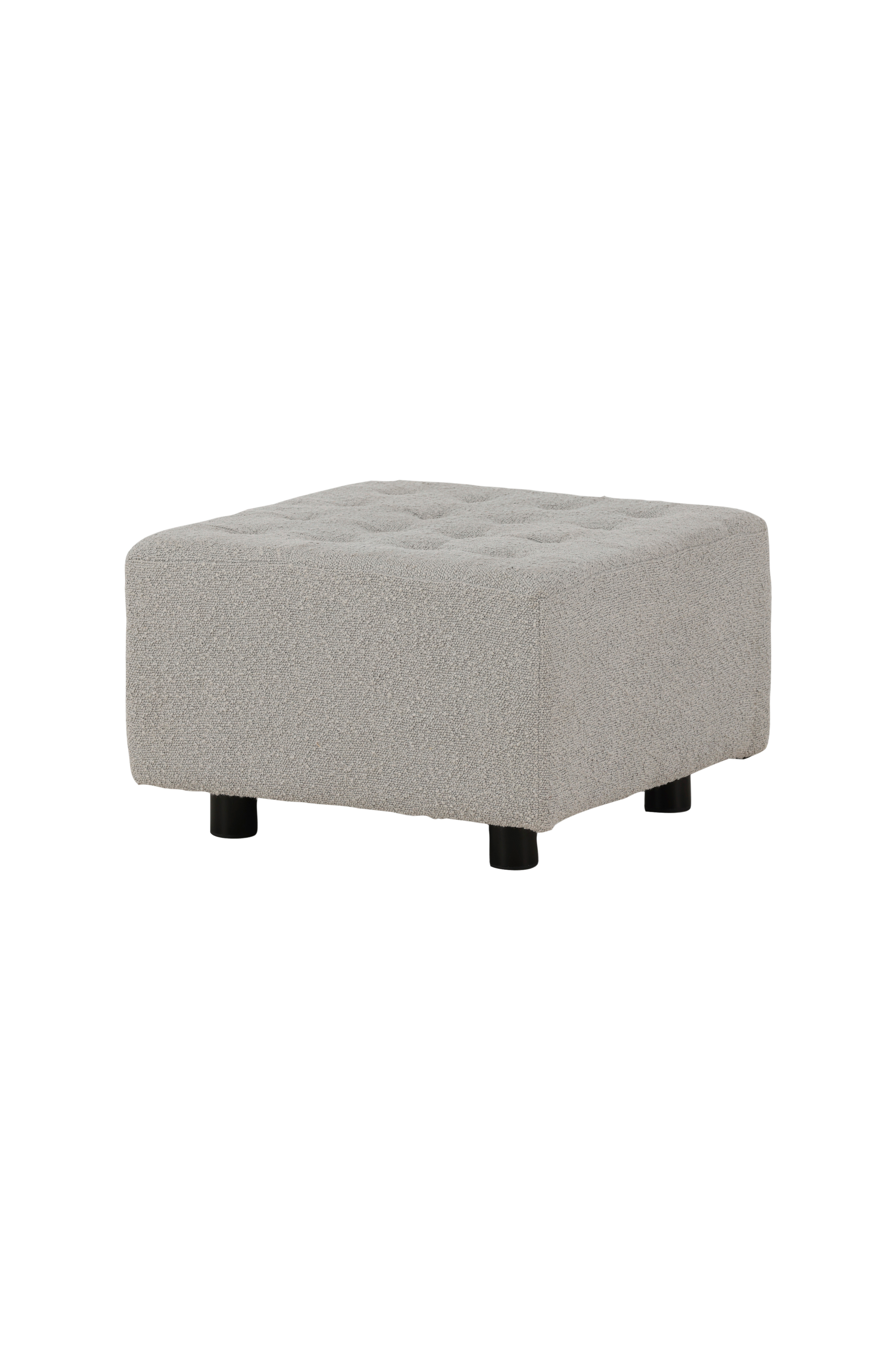 Bowie - en siddepuf som garanteret bliver en succes i dit hjem! Denne lækre siddepuf har en rektangulær udformning med bløde former, fremstillet i lysegråt boucléstof med dybthæftede knapper som bliver til en flot detalje. Puffen står på fire ben i sort stål som giver møblet et flot løft. Brug som fodskammel til at hvile fødderne på, som ekstra siddeplads, når der er mange gæster eller placér den som stilikon ved siden af andre møbler - kun din fantasi sætter grænserne!