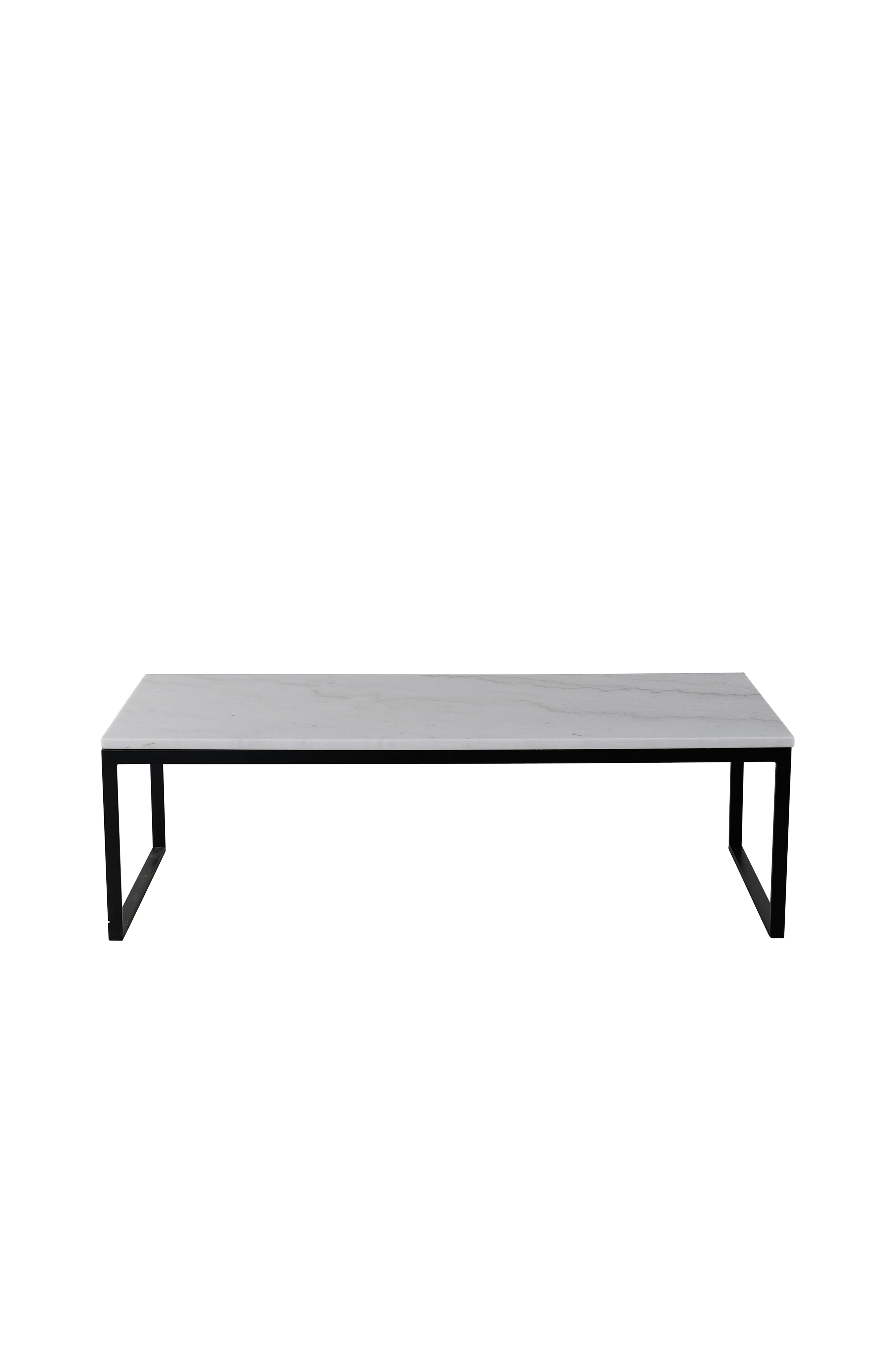 Moderne sofabord med stilrene detaljer. En bordplade i ægte marmor og ben i metal. Farvenuancer kan forekomme i det sorte mod mørk- og lysegrå da marmor er et naturmateriale. Mål: 60x120 cm, højde 36 cm. Leveres usamlet.