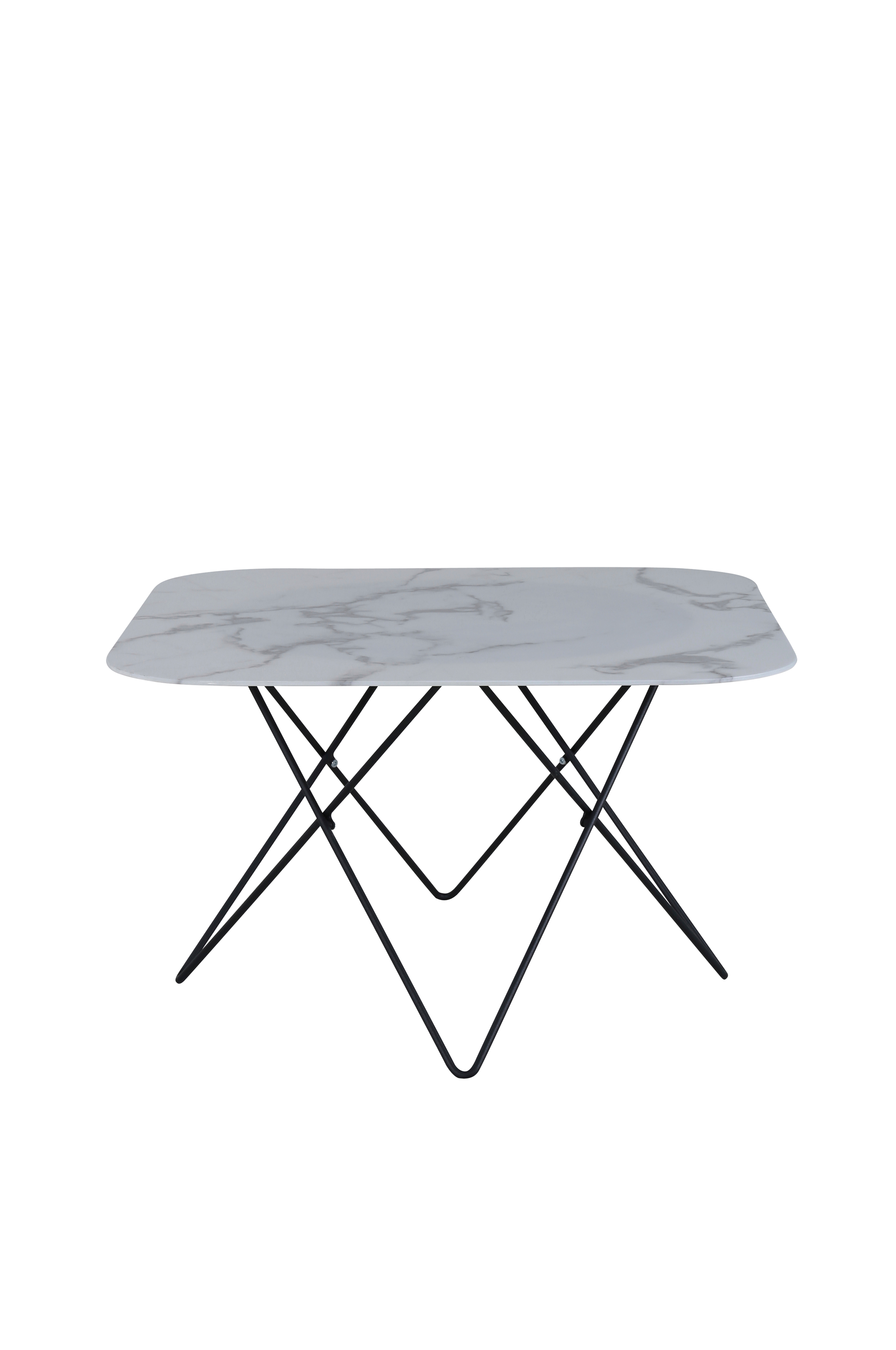 Tristar sofabord med bordplade i marmorglas og bordben i metal. Bordets mål: Længde: 80 cm, bredde: 80 cm, højde: 46 cm. Bordet er nemt at samle.