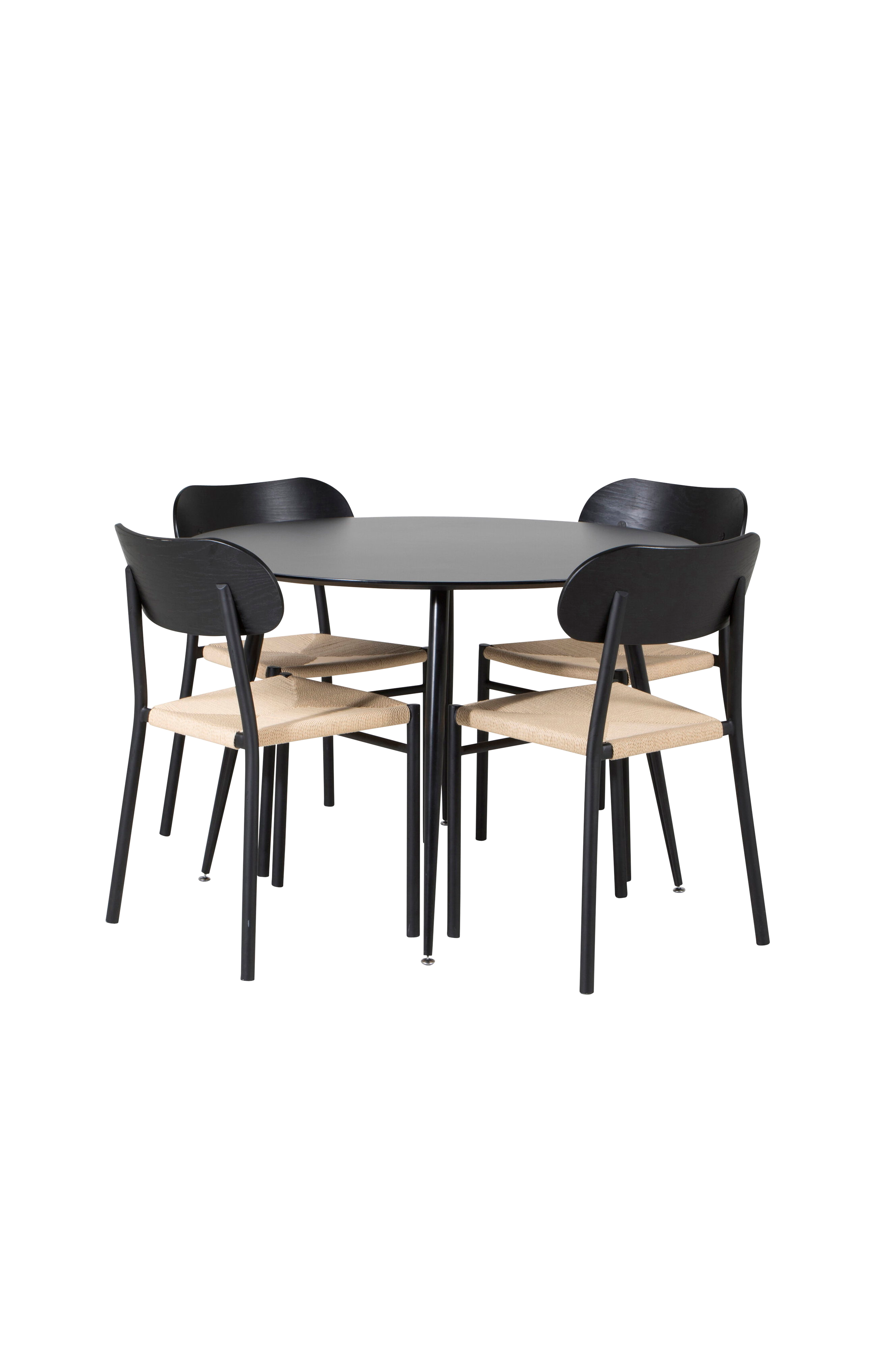 En trendy madgruppe, der passer til de fleste hjem! Madgruppen kombineres af vores pæne og stilfulde runde borde i serien silar og moderne spisestuestole i serien polly.
