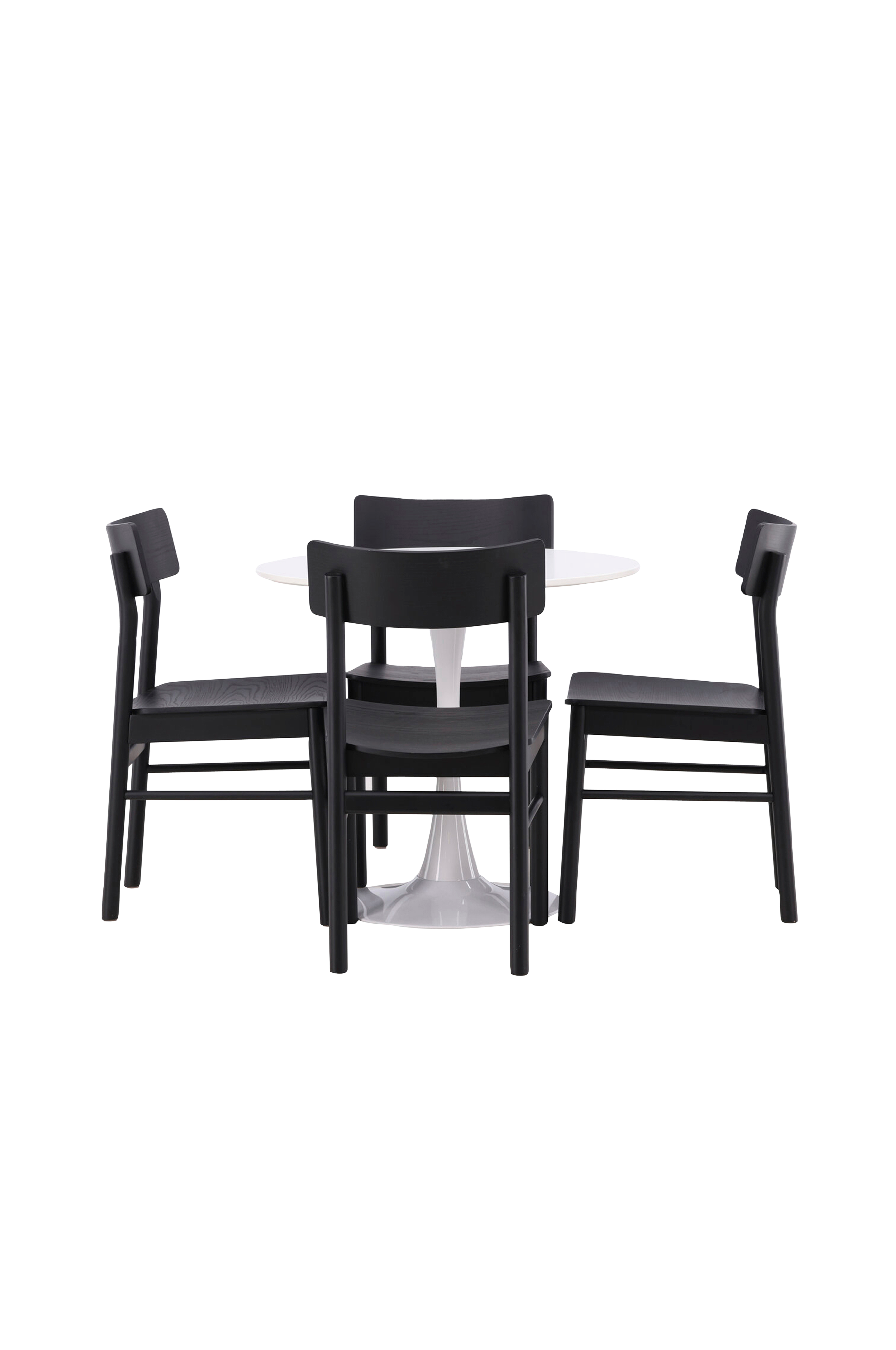 En flot sort spisegruppe! Det rektangulære spisebord Danburi har et klassisk design med en tynd bordplade i sort MDF og let skråtstillede ben i bøgetræ med dekorative detaljer i sort stål. Her i smagfuld kombination med moderne spisebordsstole fra serien Montros. Stolen har et klassisk og nostalgisk design med lige, nordiske former, gennemgående fremstillet i sort gummitræ. Kombinér klassiske former med robust materiale! Bordets mål: 120x60 cm.